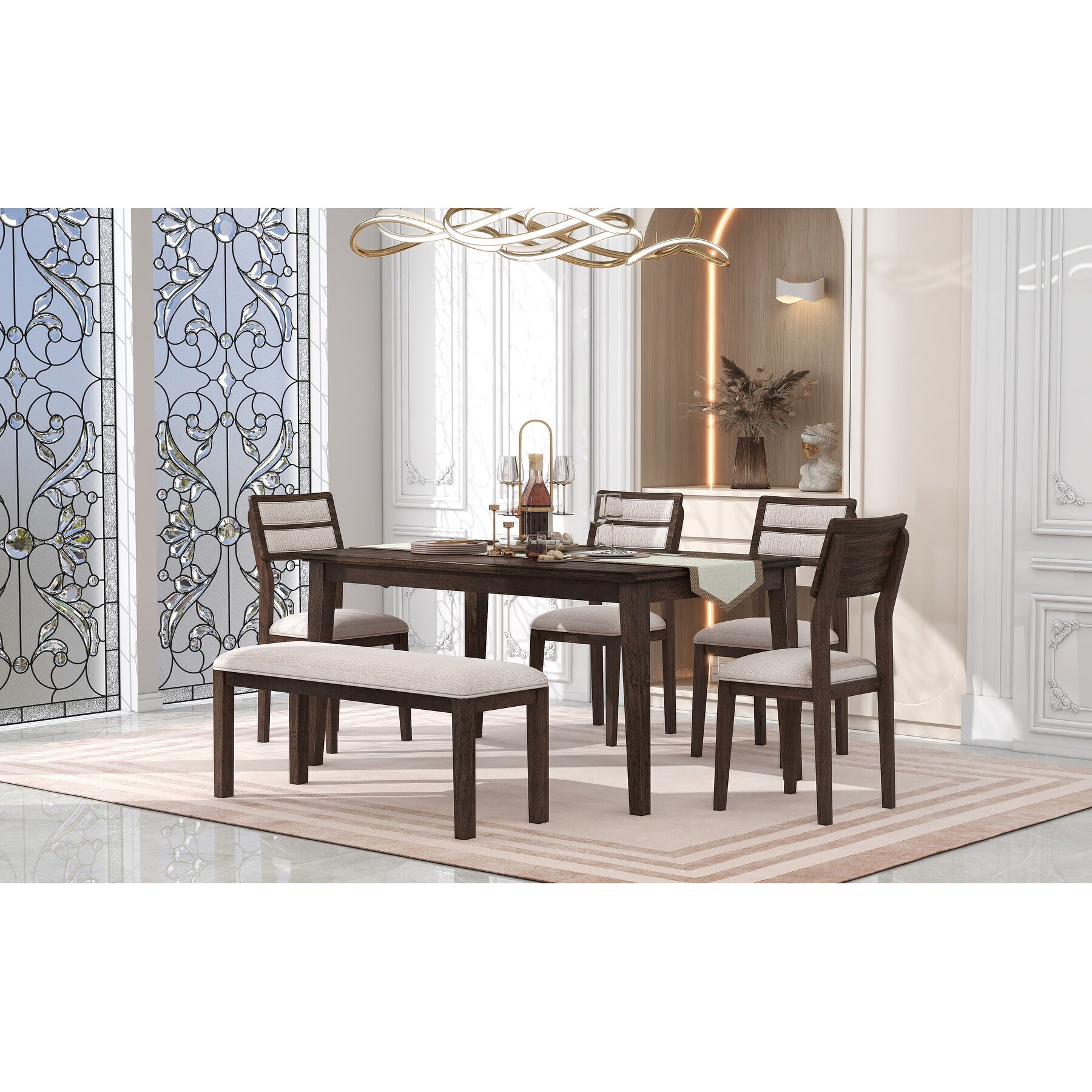 Modern Dining Set 4 Upholstered Chairs and Bench