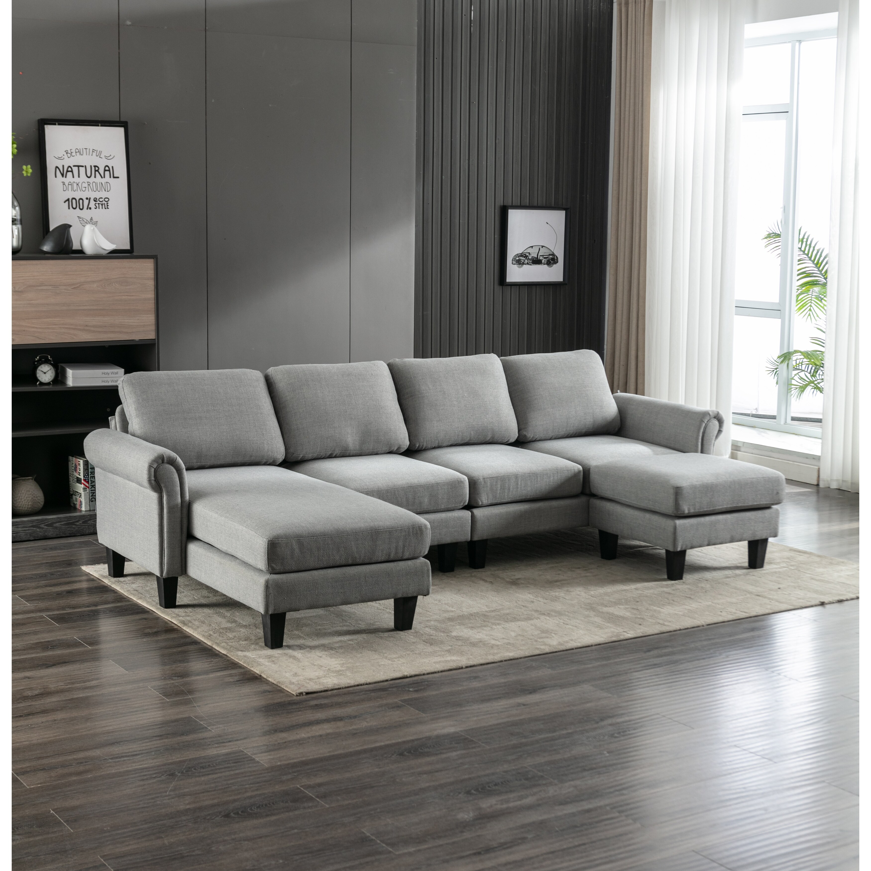 Bobkona Adolph Linen Left or Right Chaise Sectional Set