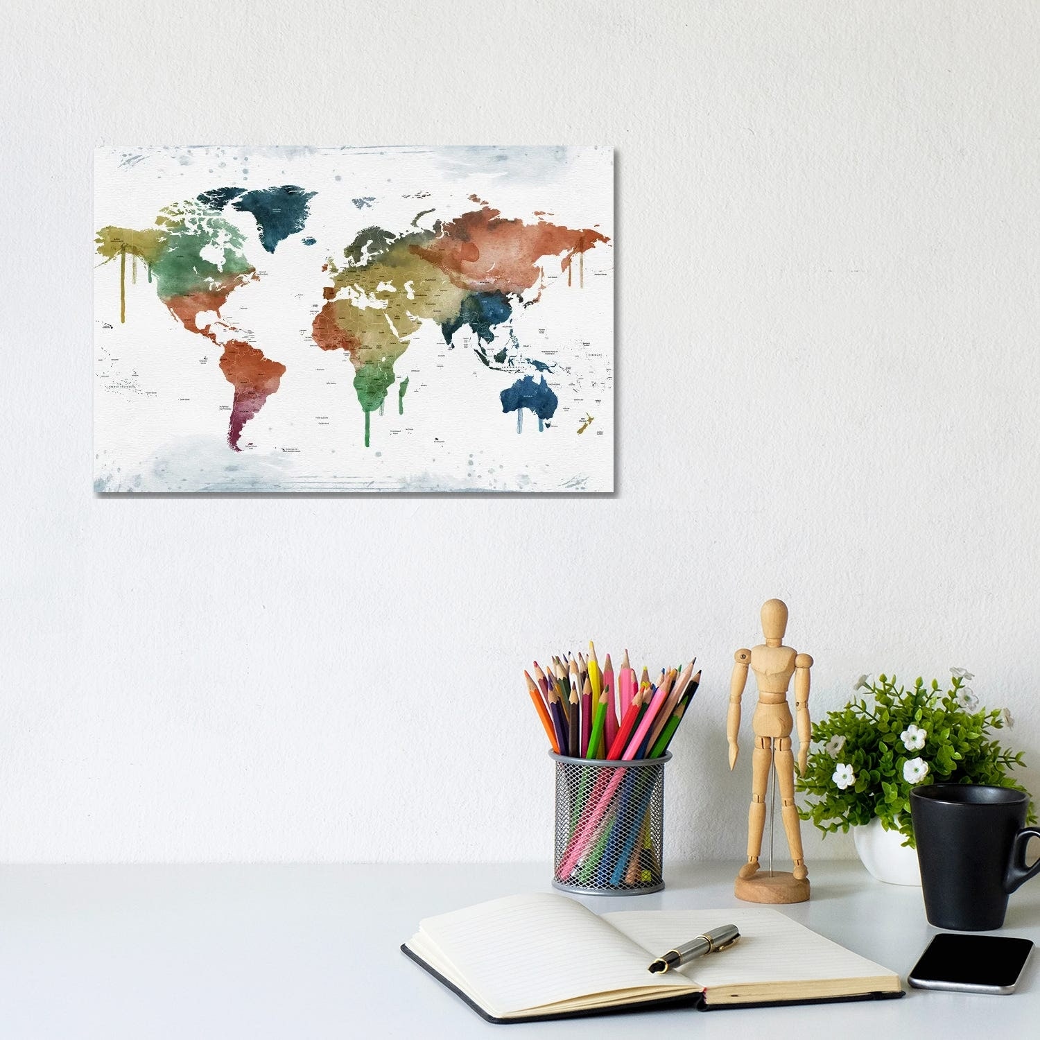 iCanvas "World Map With Names" by WallDecorAddict Canvas Print