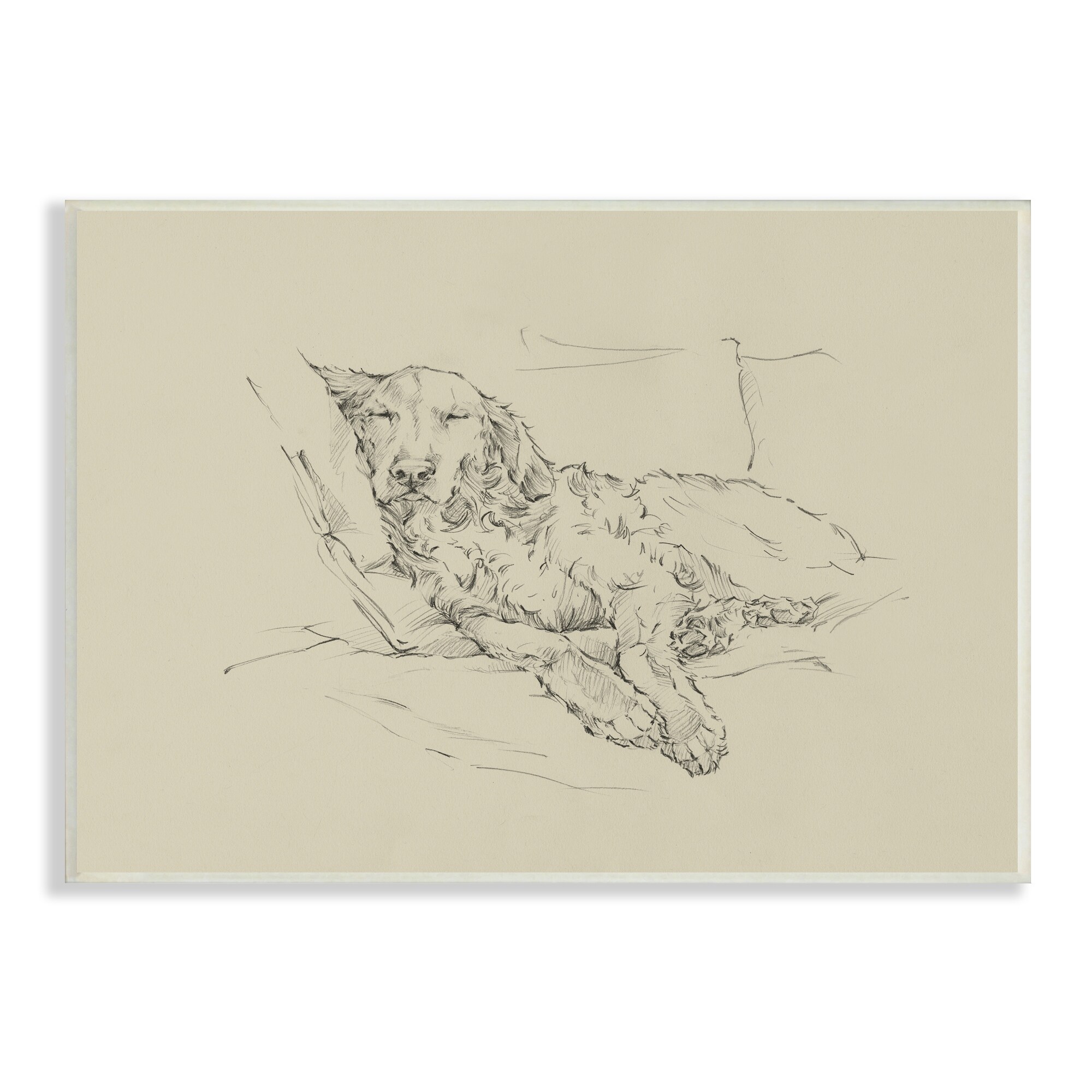 Stupell Industries Fluffy Retriever Napping Cushions Casual Monochromatic Dog Sketch Wood Wall Art - Black