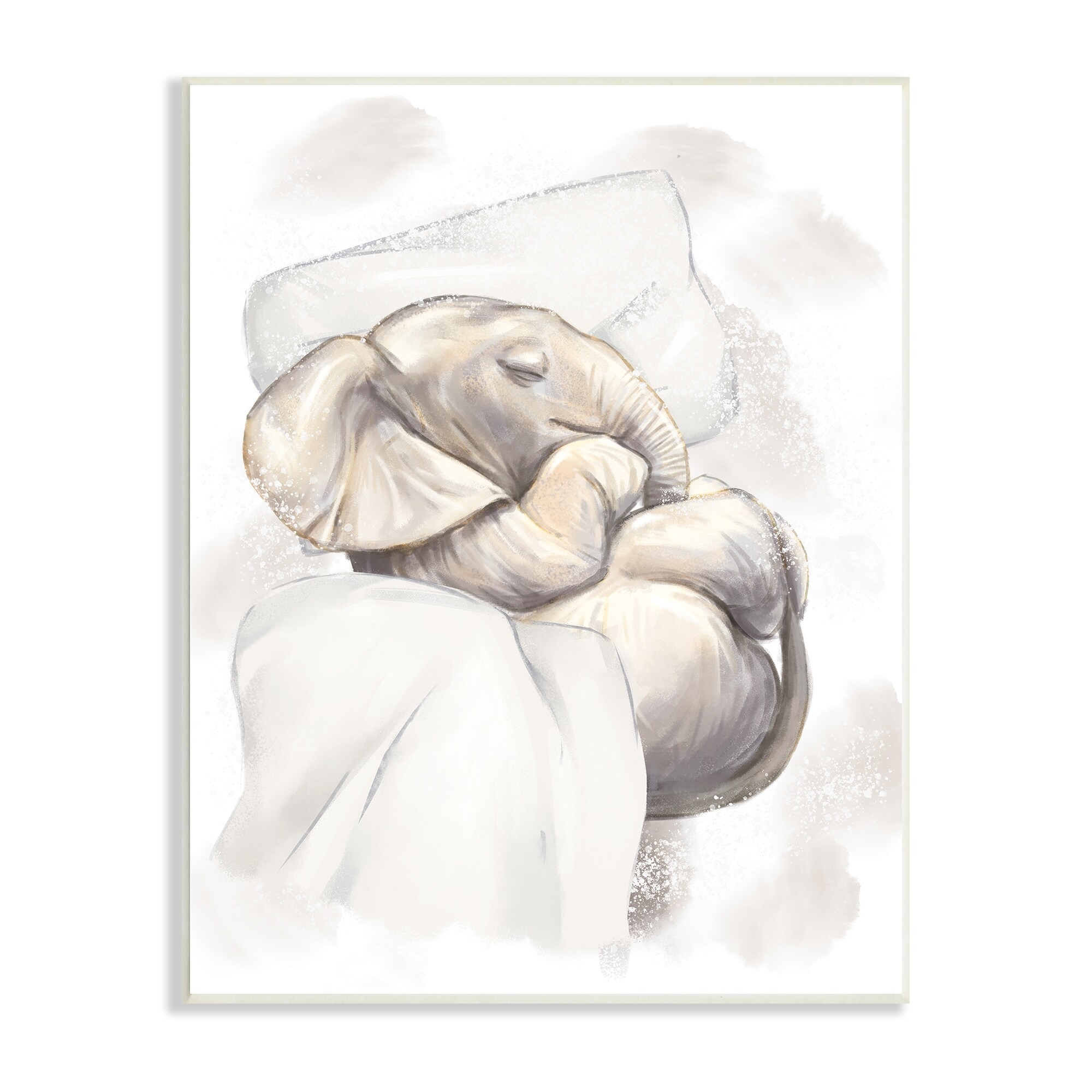 Stupell Baby Elephant Nursery Animal Cozy Pillow Nap Wood Wall Art - White
