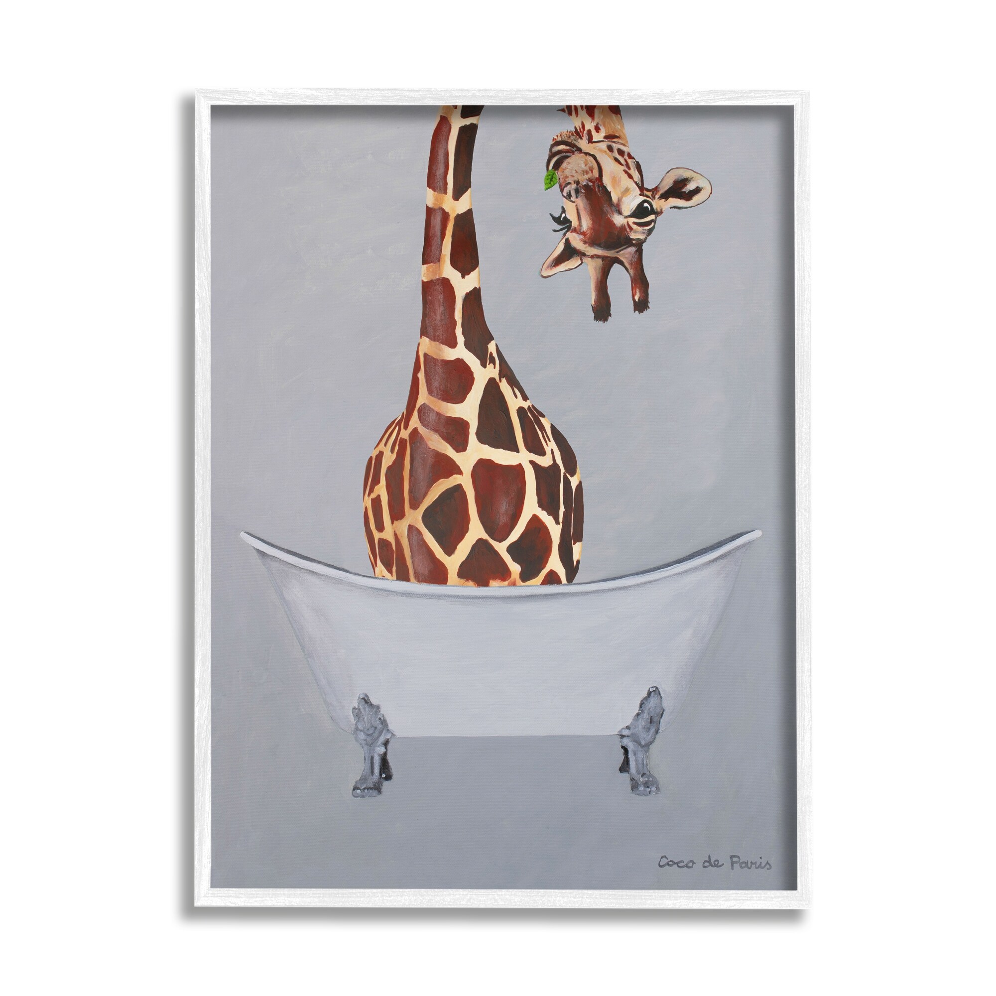 Stupell Funny Giraffe Neck Bathtub Bathroom Theme Painting Canvas Wall Art