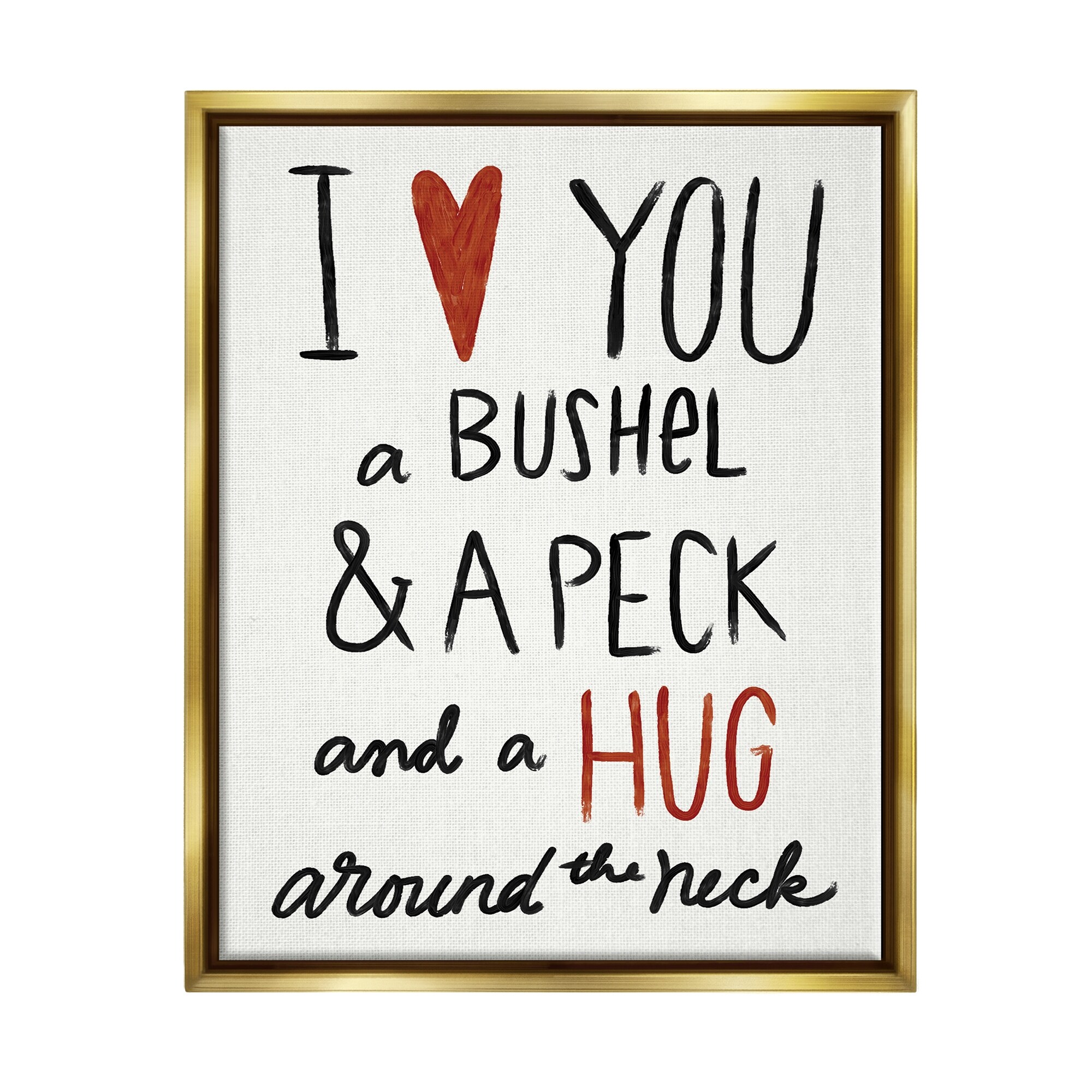 Stupell Love You Bushel Peck Hug Around Neck Phrase Canvas Wall Art - Black