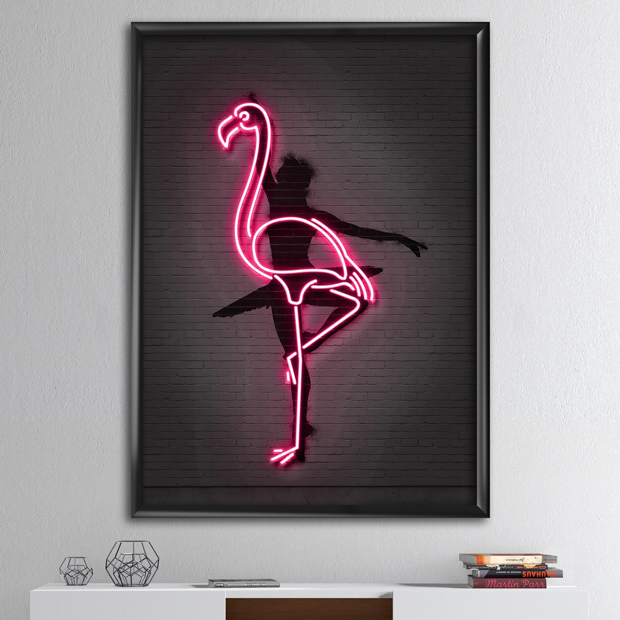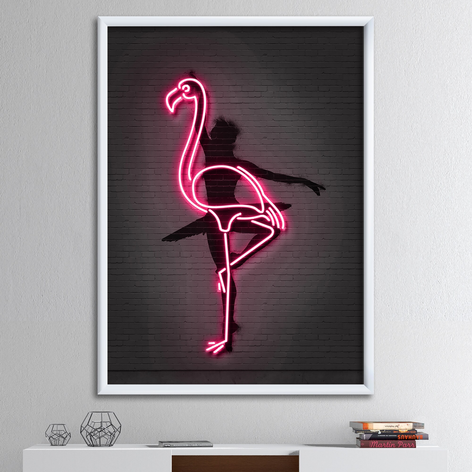 Designart "Neon Pink Flamingo and Ballerina" Modern & Contemporary Framed Art Print