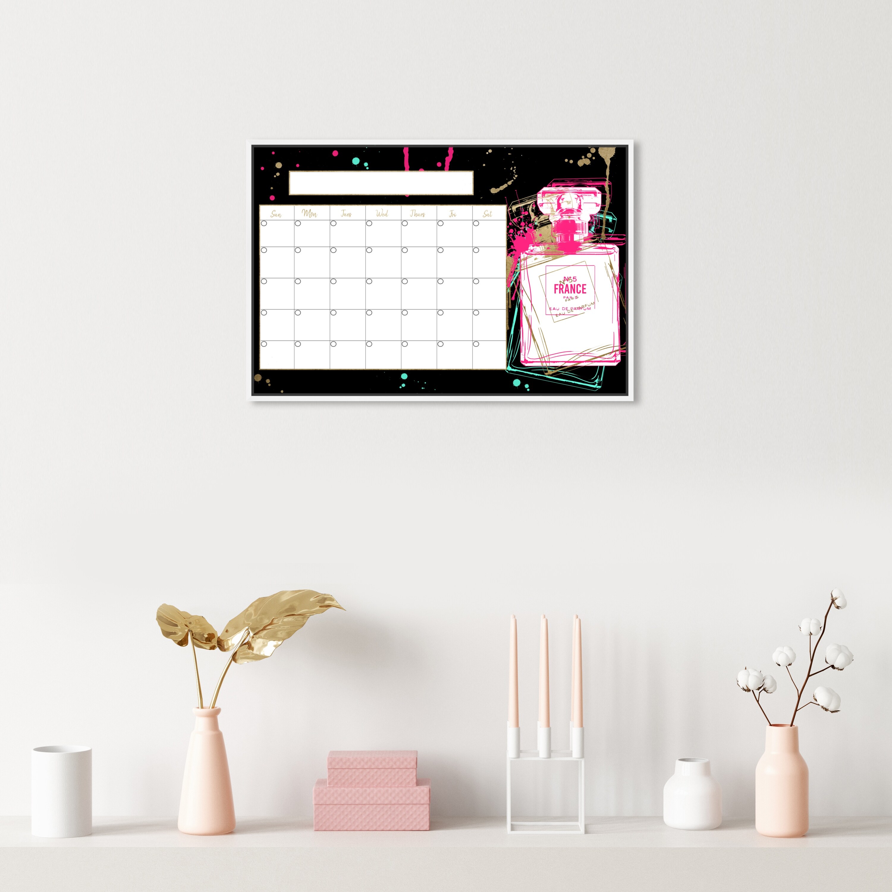 Oliver Gal 'Neon Perfume Calendar' Glam Black Wall Art Canvas Print