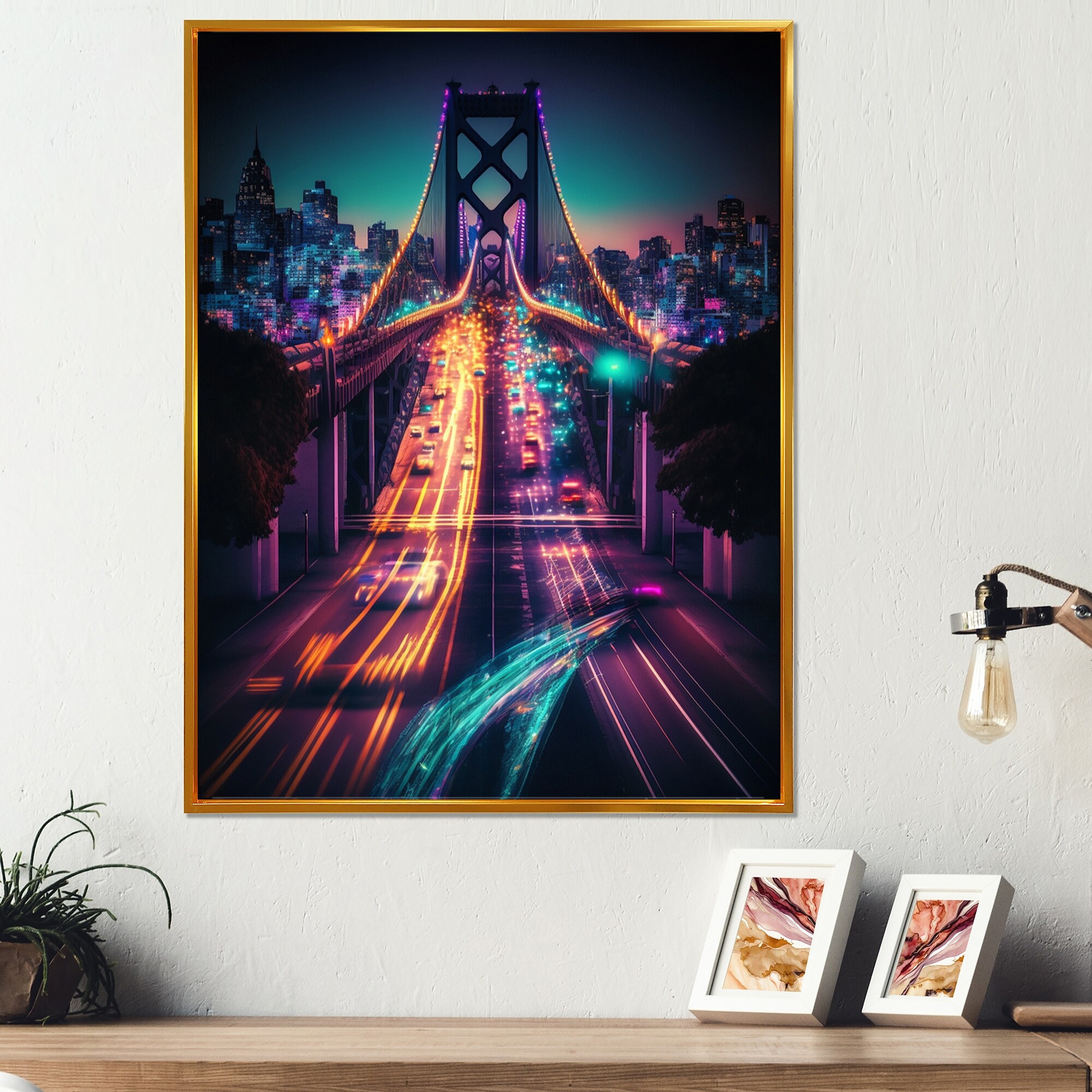 Designart "Futuristic San Francisco Neon I" Cityscapes Framed Canvas Art Print