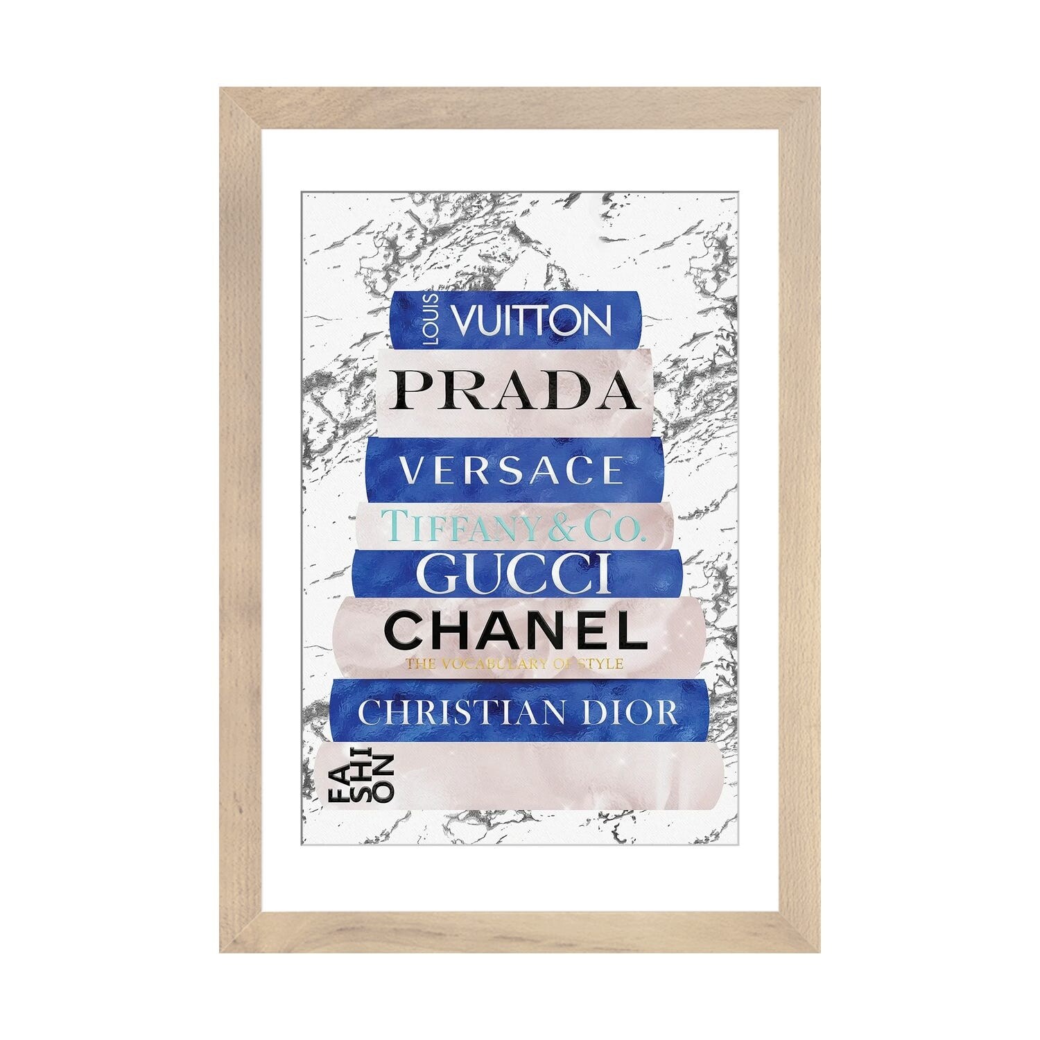iCanvas "Fashion Nerd-Bright Blue & Beige Book Stack" by Pomaikai Barron Framed
