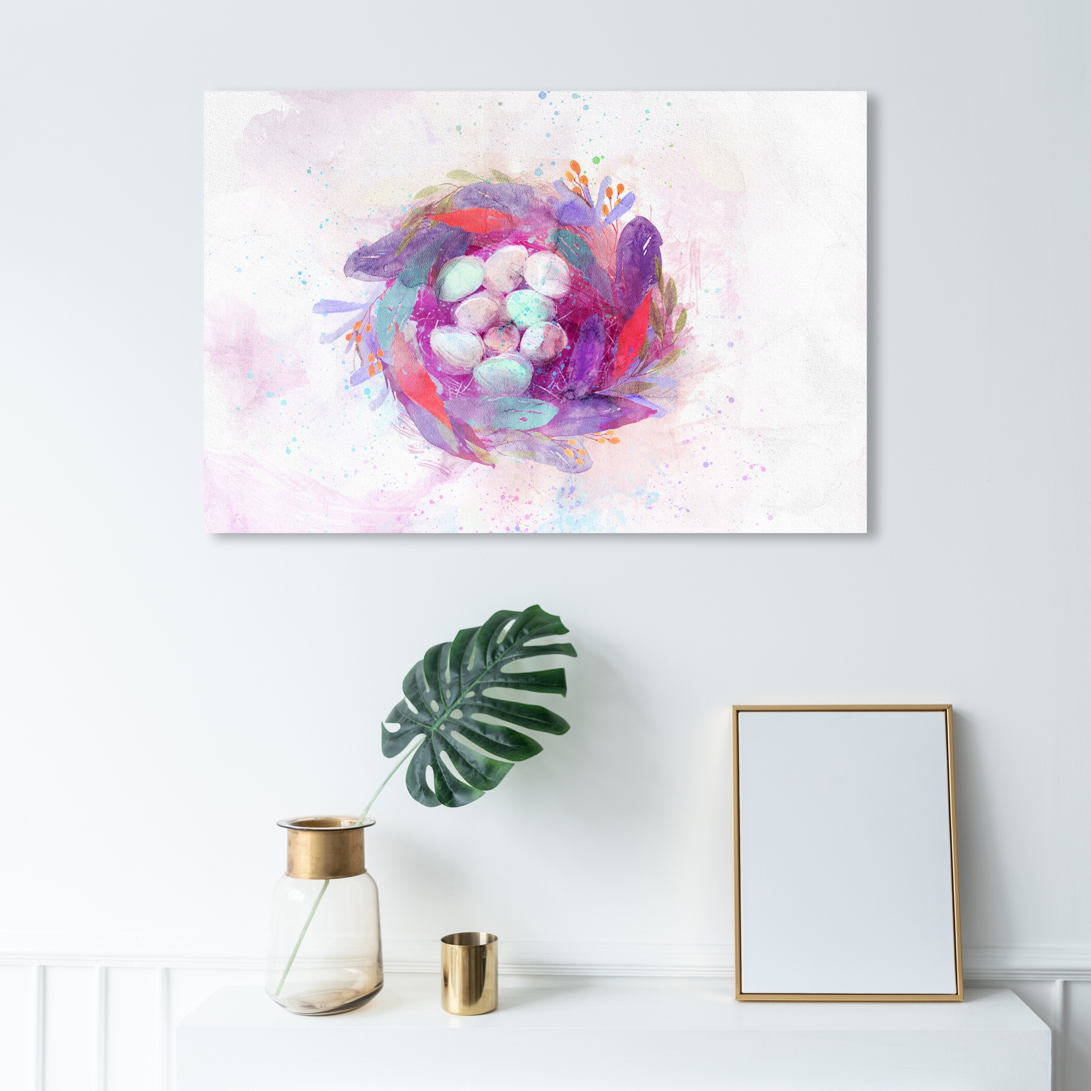Oliver Gal 'Boho Feather Nest' Animals Wall Art Canvas Print - Purple, Pink