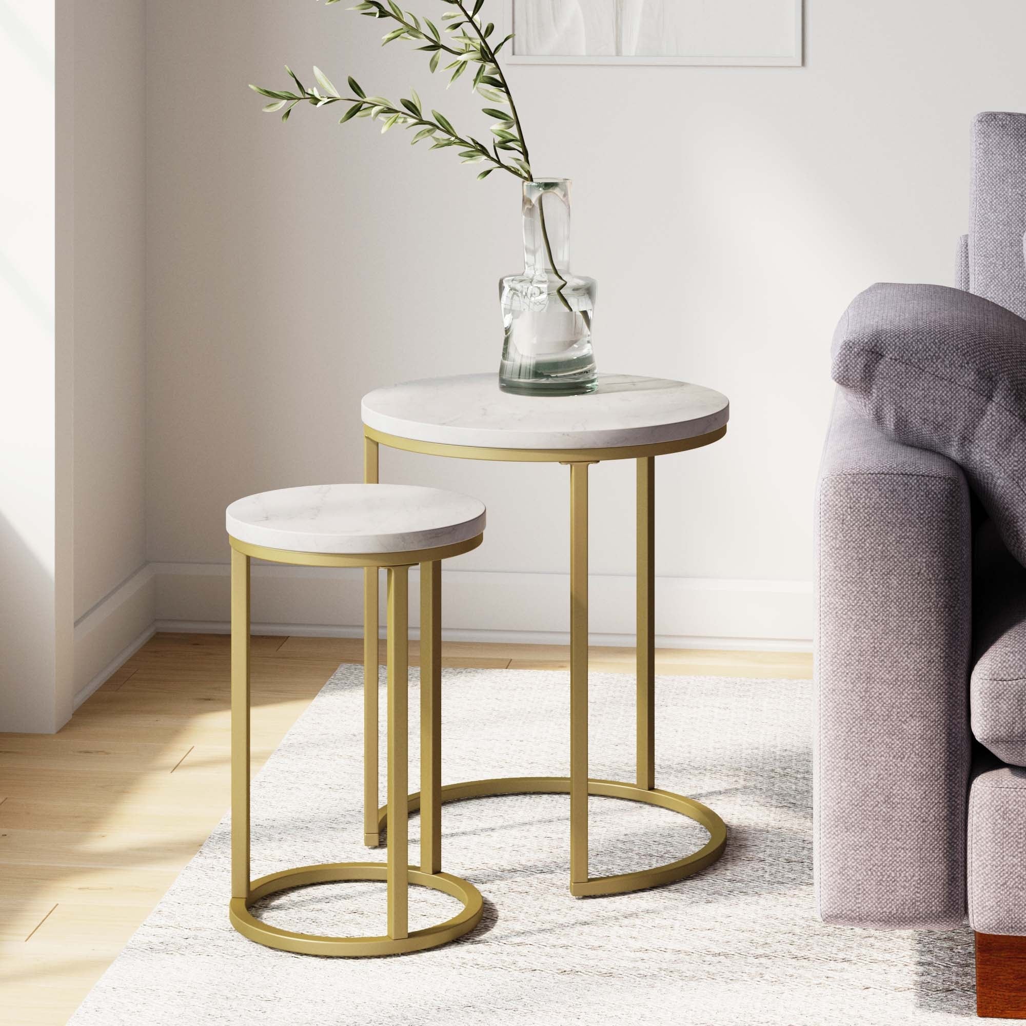 Nathan James Lula Tabletop with Metal Base Industrial Nested Round End Table Set of 2
