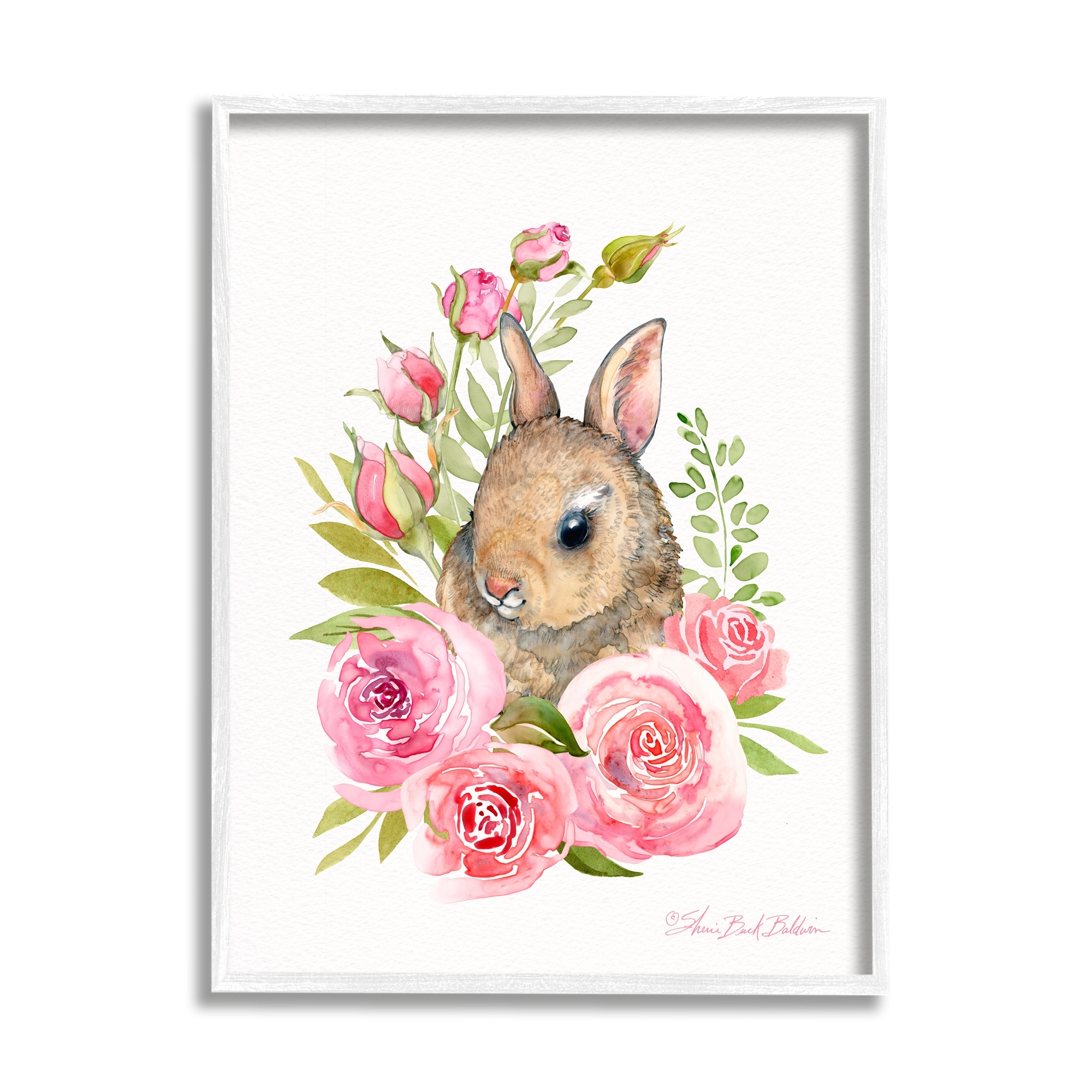 Stupell Woodland Rabbit Pink Rose Nest Spring Florals Framed Wall Art
