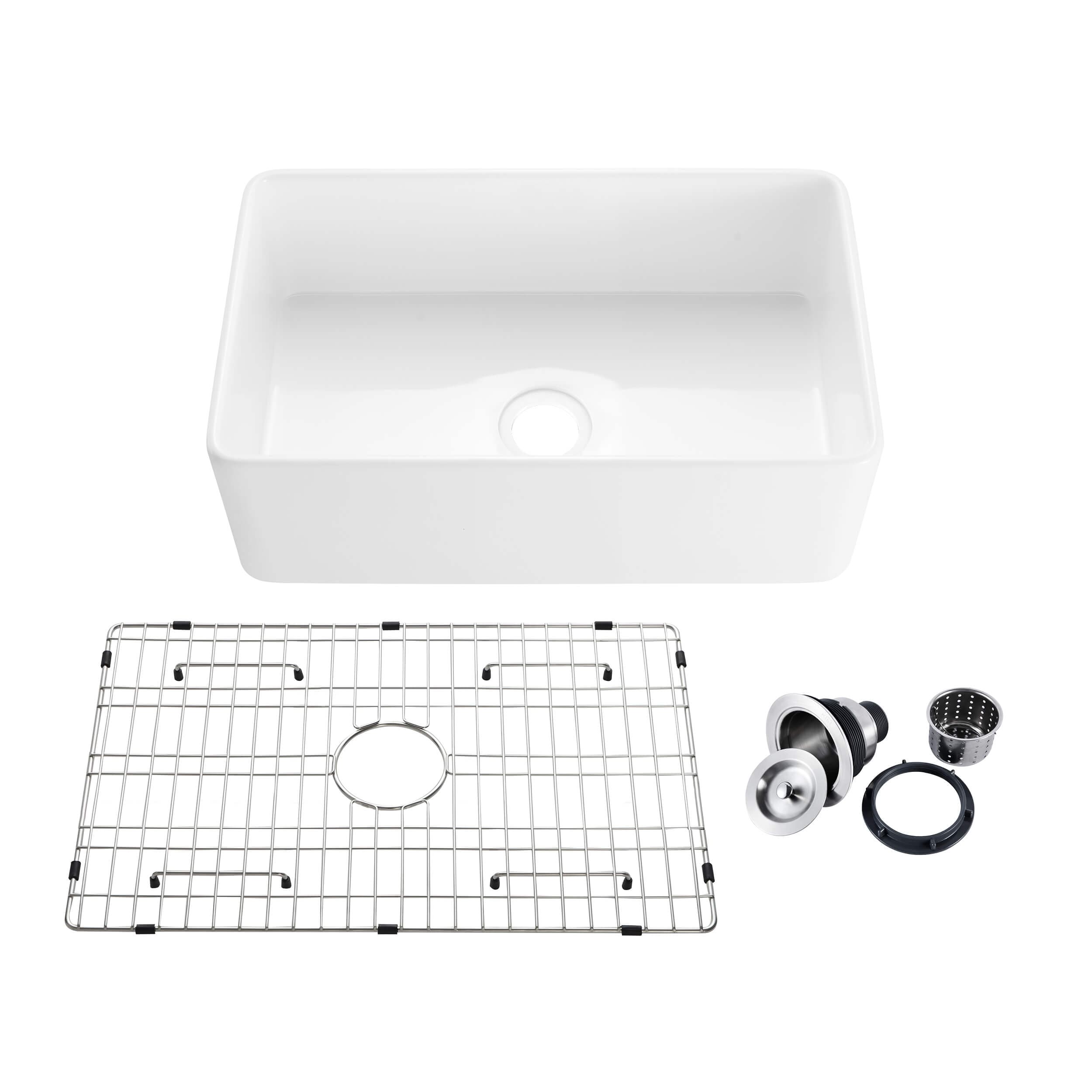 Fireclay 30" L X 20" W Farmhouse Kitchen Sink with Grid and Strainer