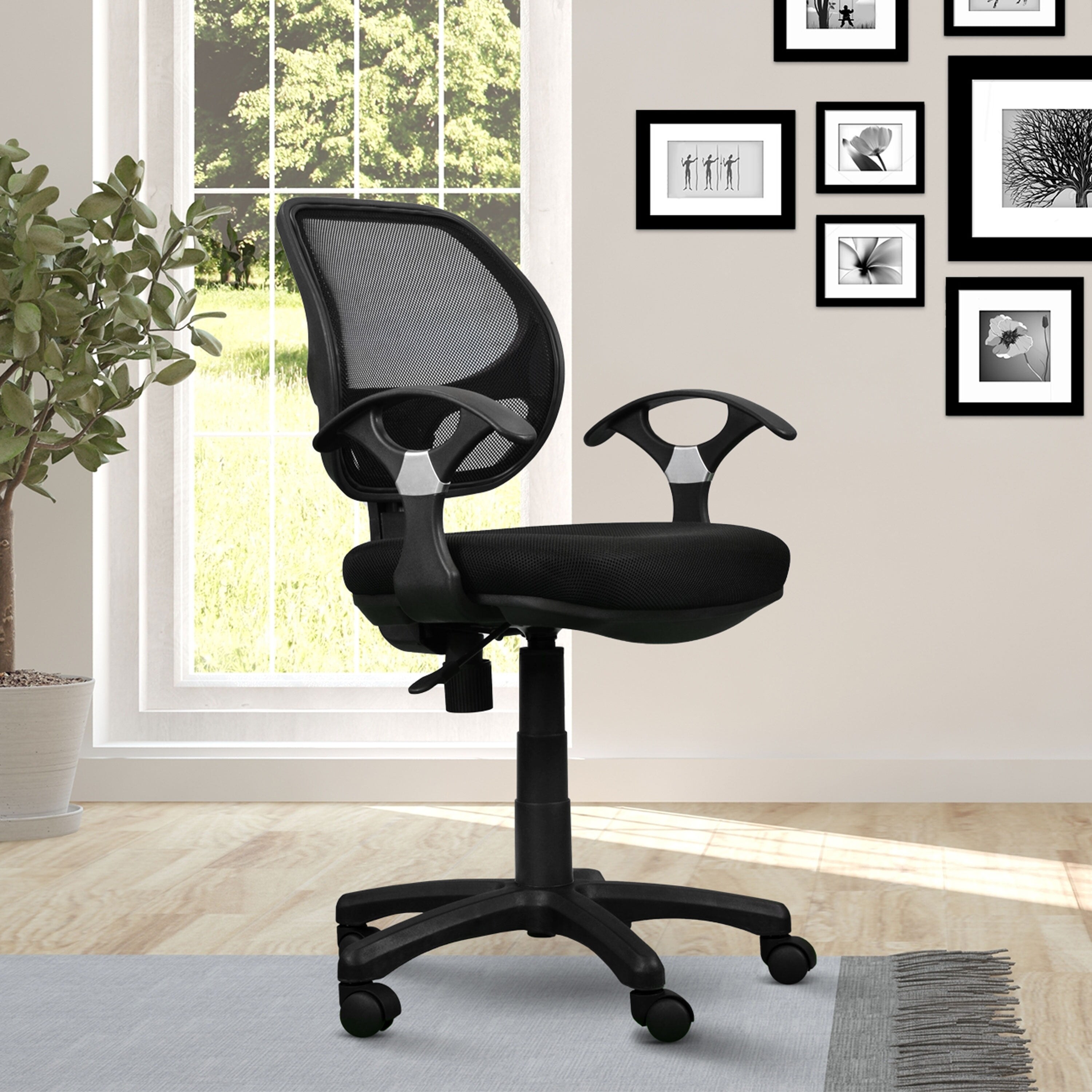 Stylish Mid-Back Mesh Office Chair with Adjustable Arms, Black