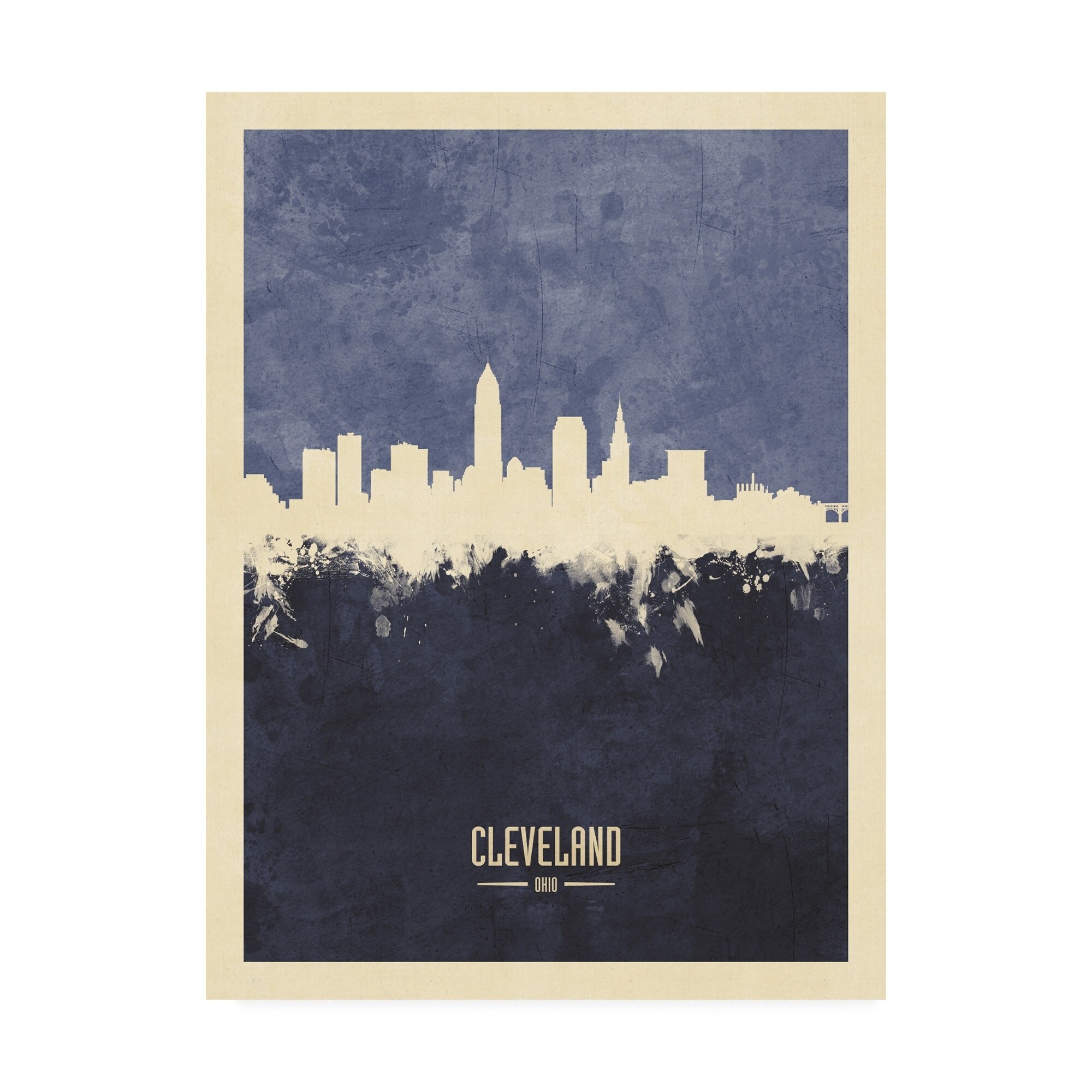 Michael Tompsett 'Cleveland Ohio Skyline Navy' Canvas Art