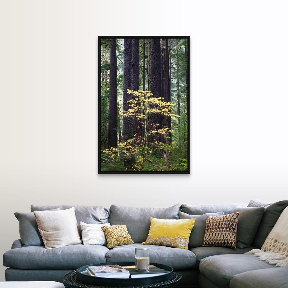 "Old-growth rain forest, Sol Duc Valley, Olympic National Park, Washington" Black Float Frame Canvas Art