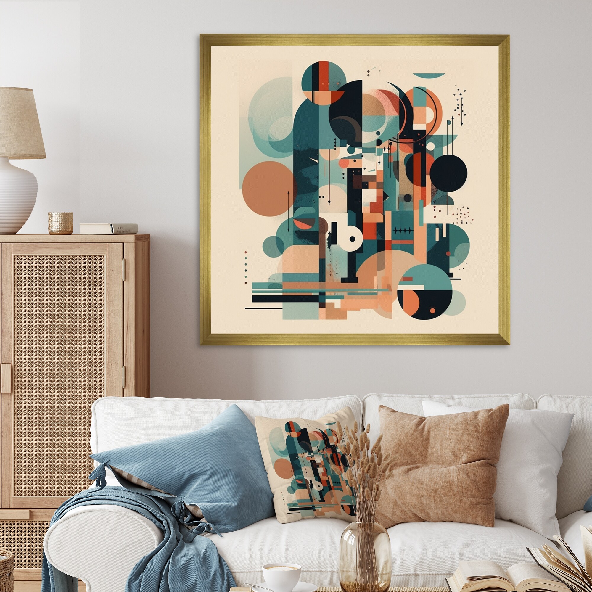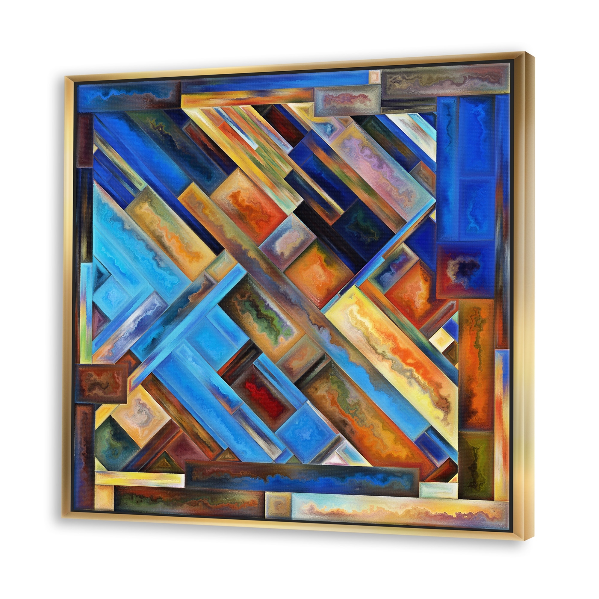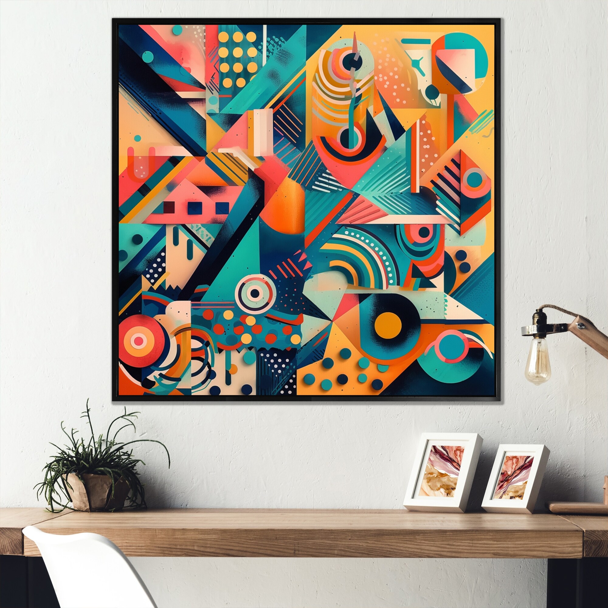 Designart "Geometrical Shapes in Orange And Blue" Modern Framed Canvas Wall Art Print