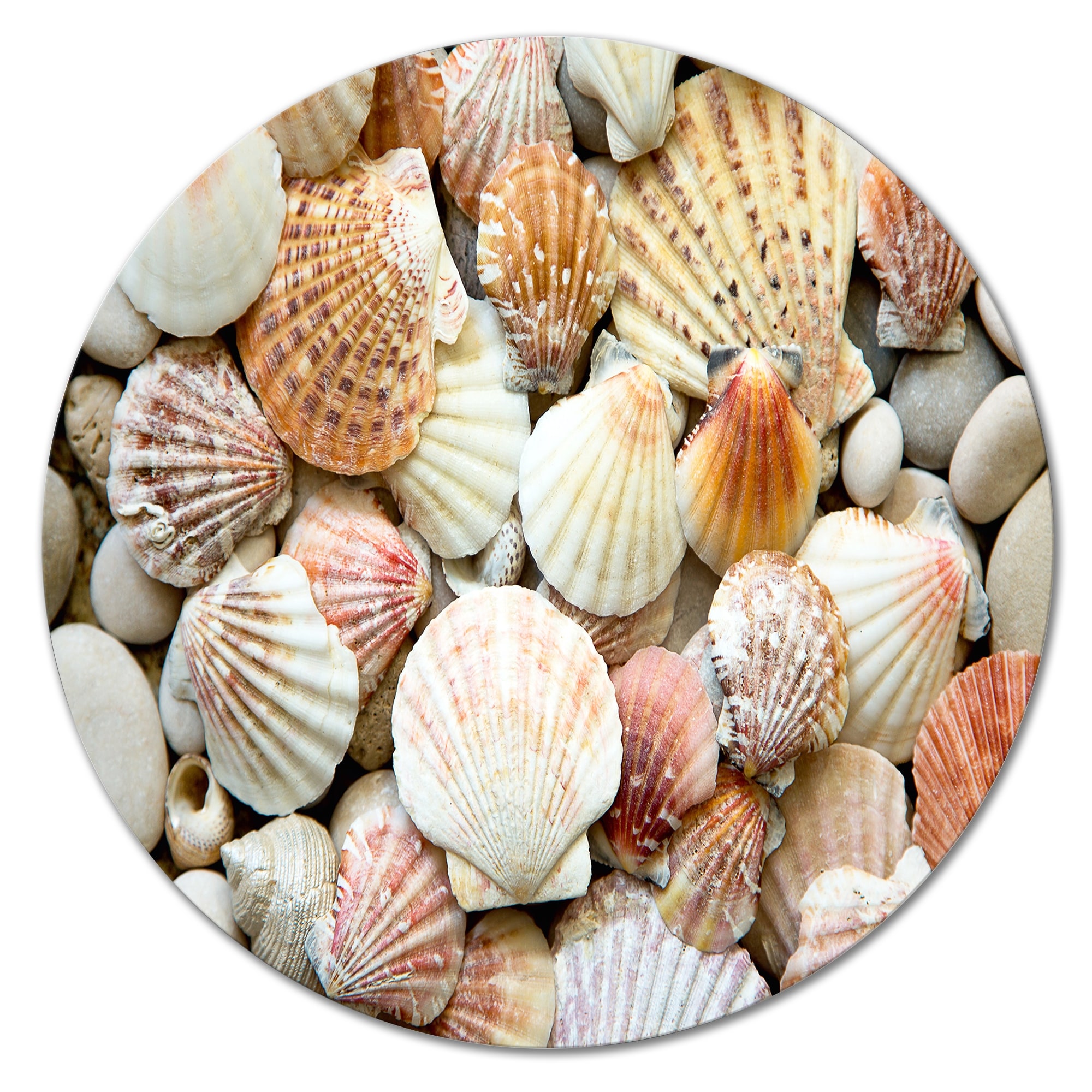 Designart 'Red Orange And White Shells And Stones' Nautical & Coastal Metal Circle Wall Art