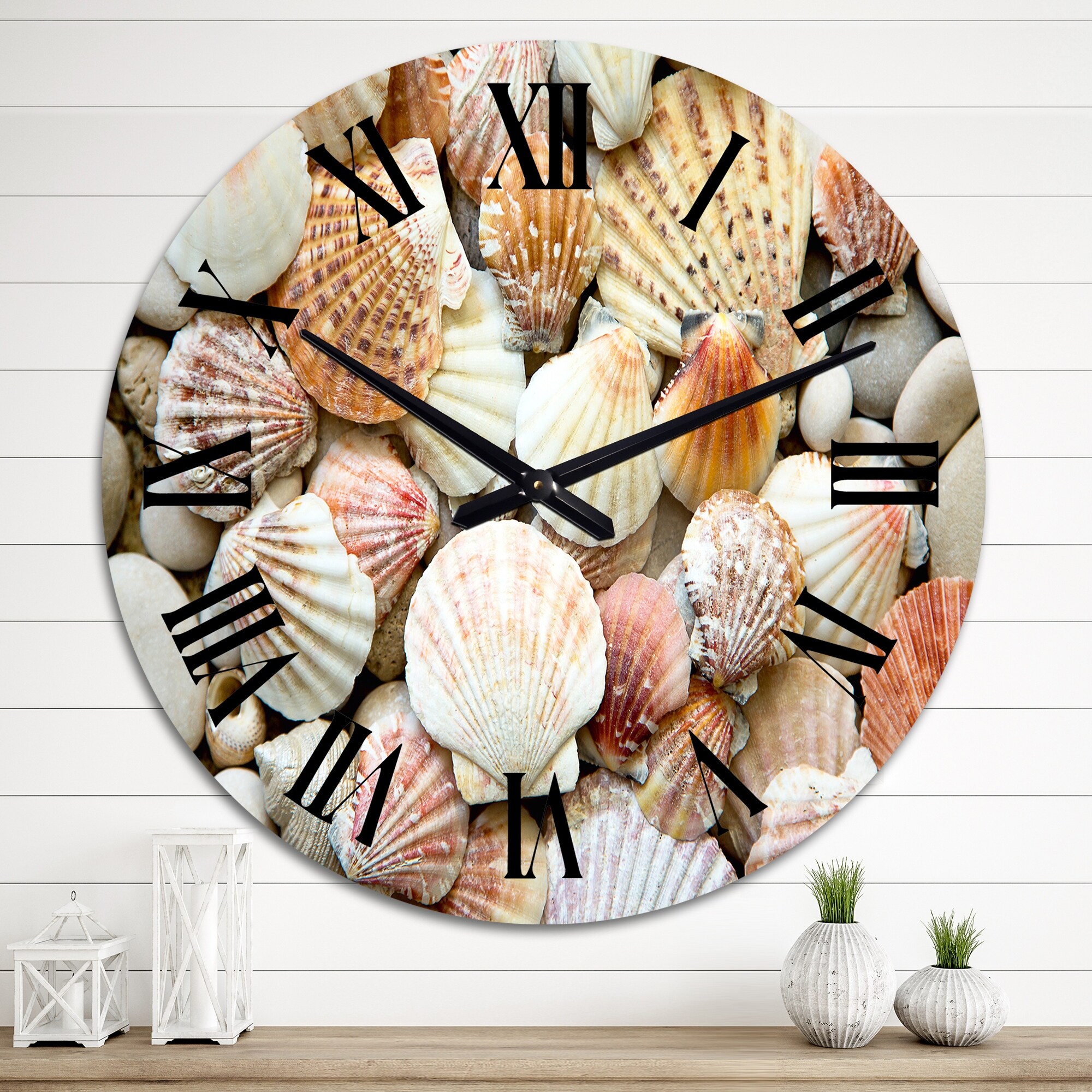 Designart 'Red Orange And White Shells And Stones' Nautical & Coastal wall clock