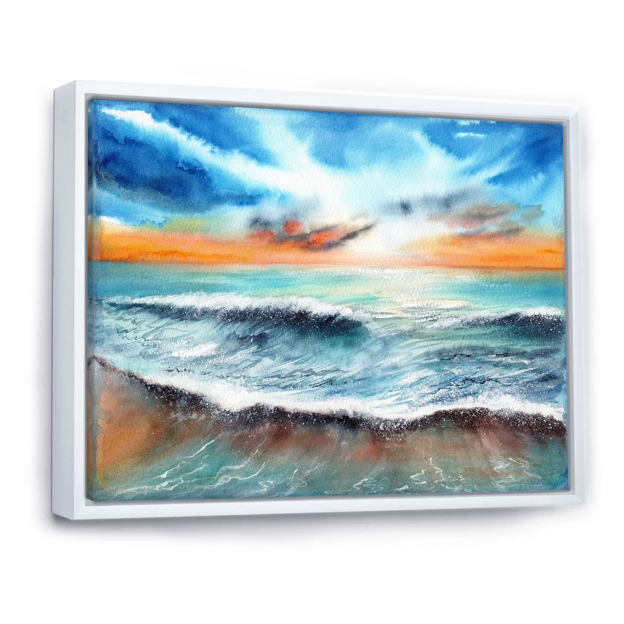 Designart "Sunset Over the Sea With Blue And Orange Sky" Nautical & Coastal Framed Canvas Wall Art Print