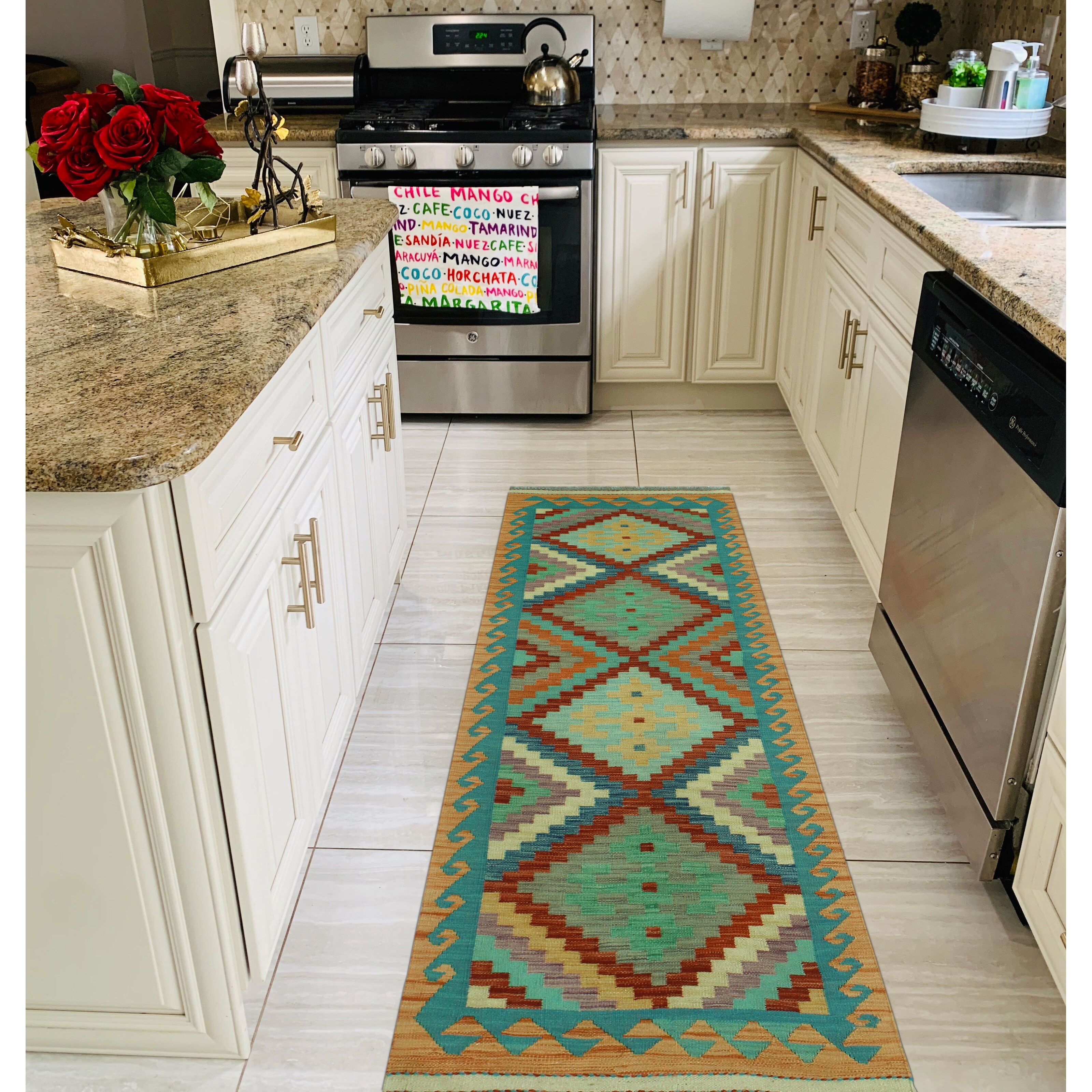 Hand-Woven Sangat Kilim Qamaria Orange/Blue Runner - 2'7" x 8'0"