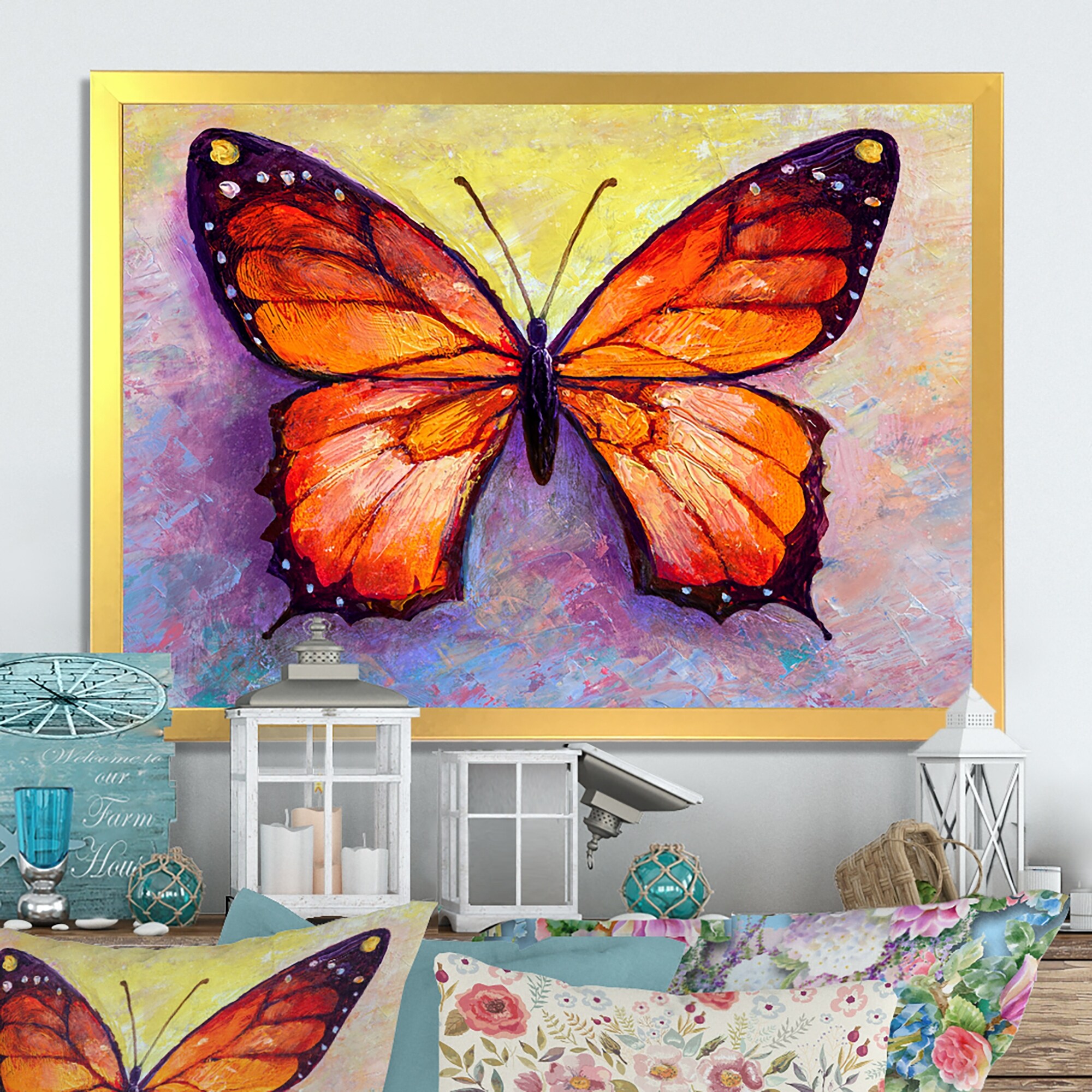 Designart "Orange Butterfly Portrait in Multicolors" Traditional Framed artwork
