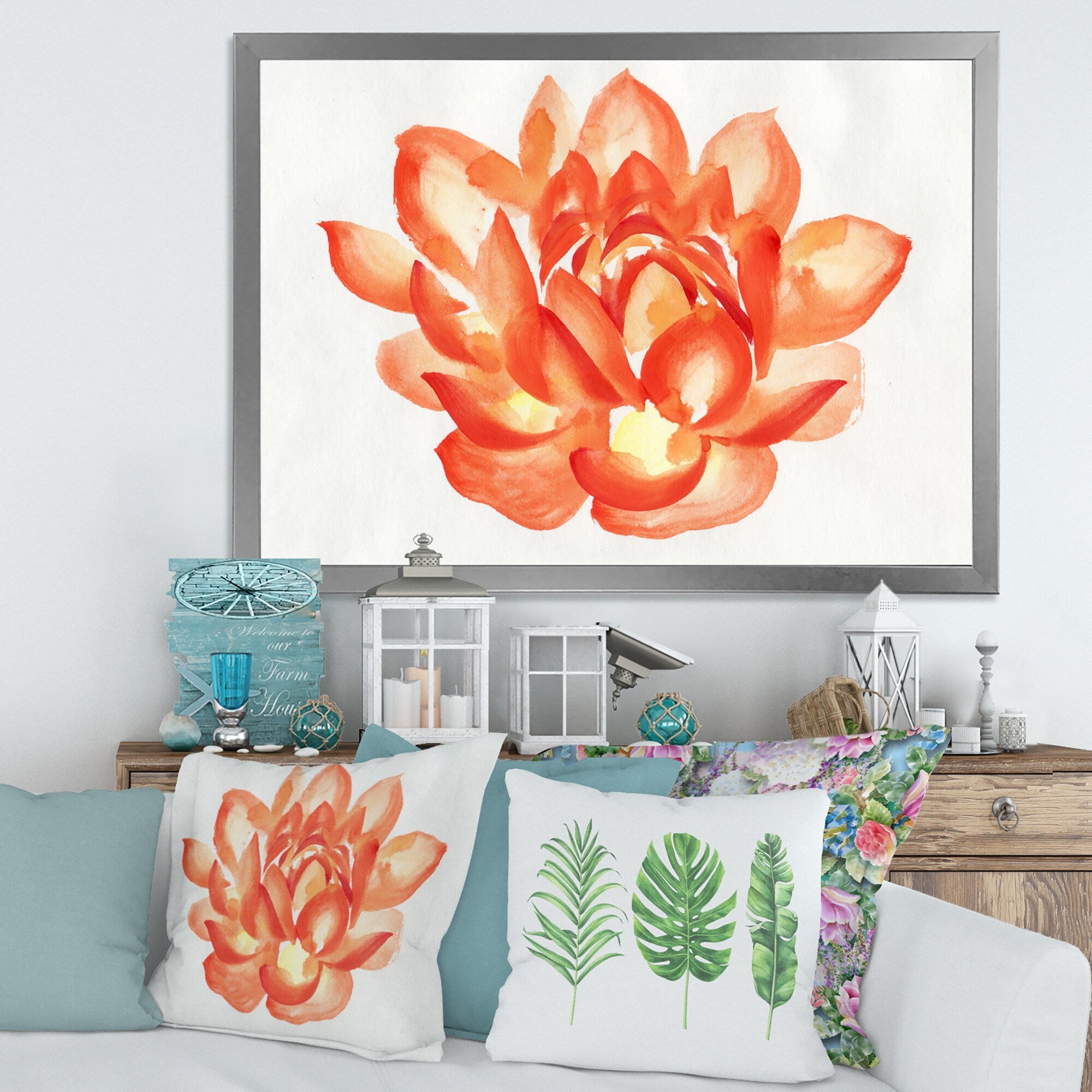 Designart "Vintage Detail of a Orange Lotus" Traditional Framed Art Print