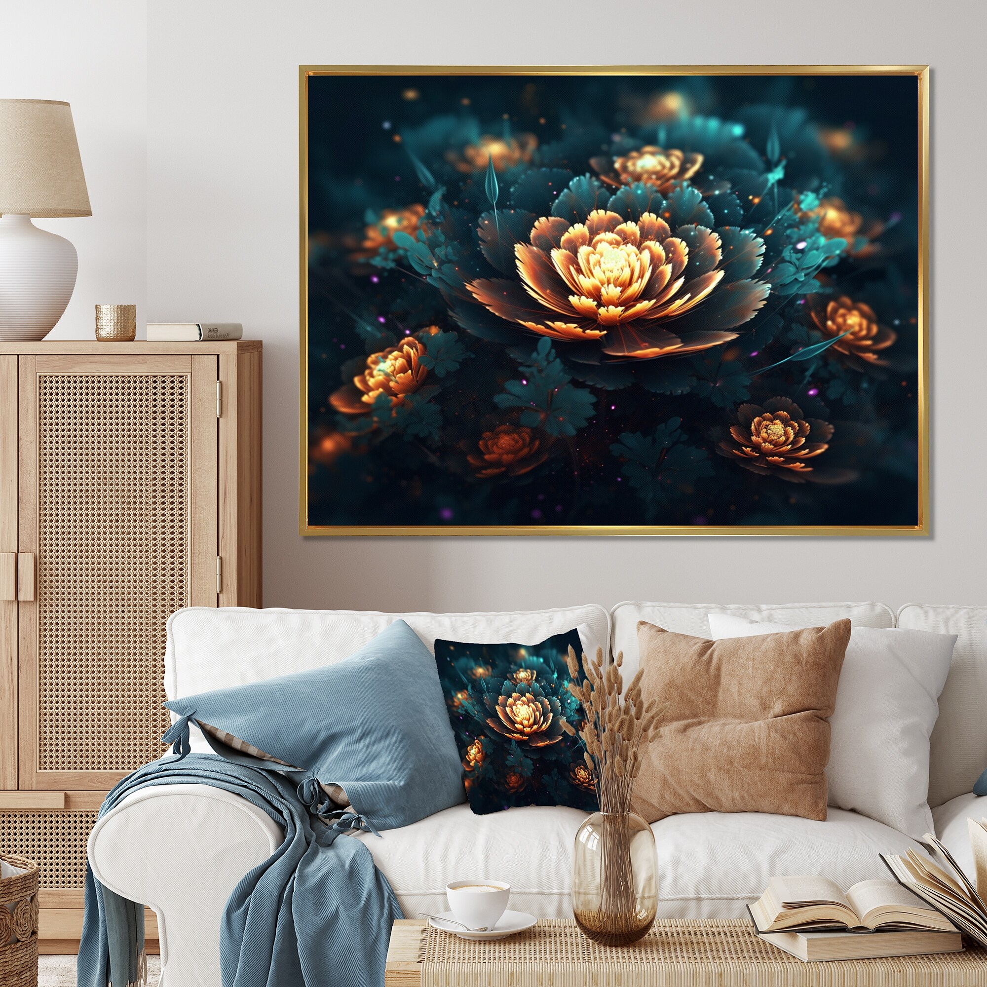 Designart "Orange Sacred Lotus Floral Bloom Ii" Floral Lotus Framed Canvas Wall Art