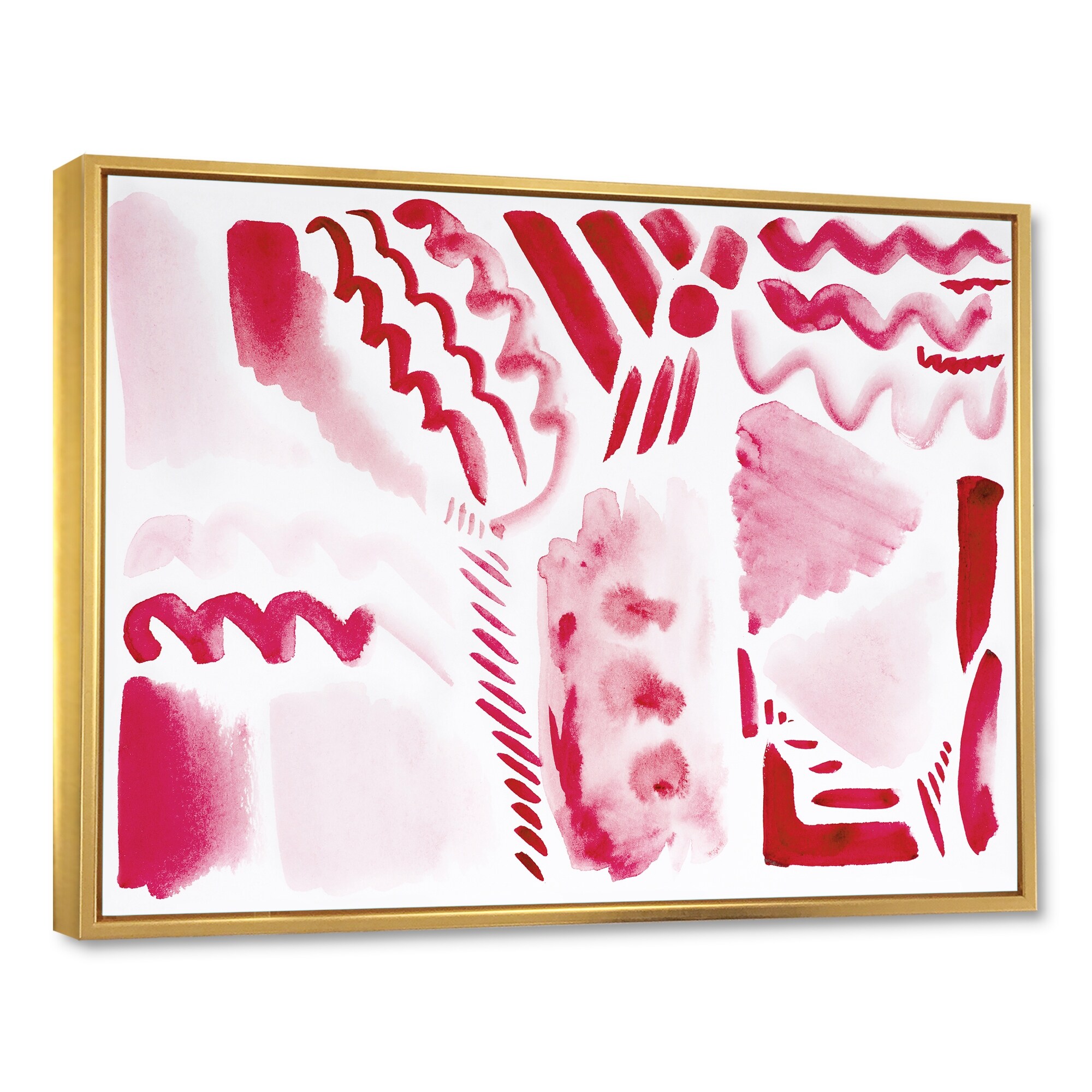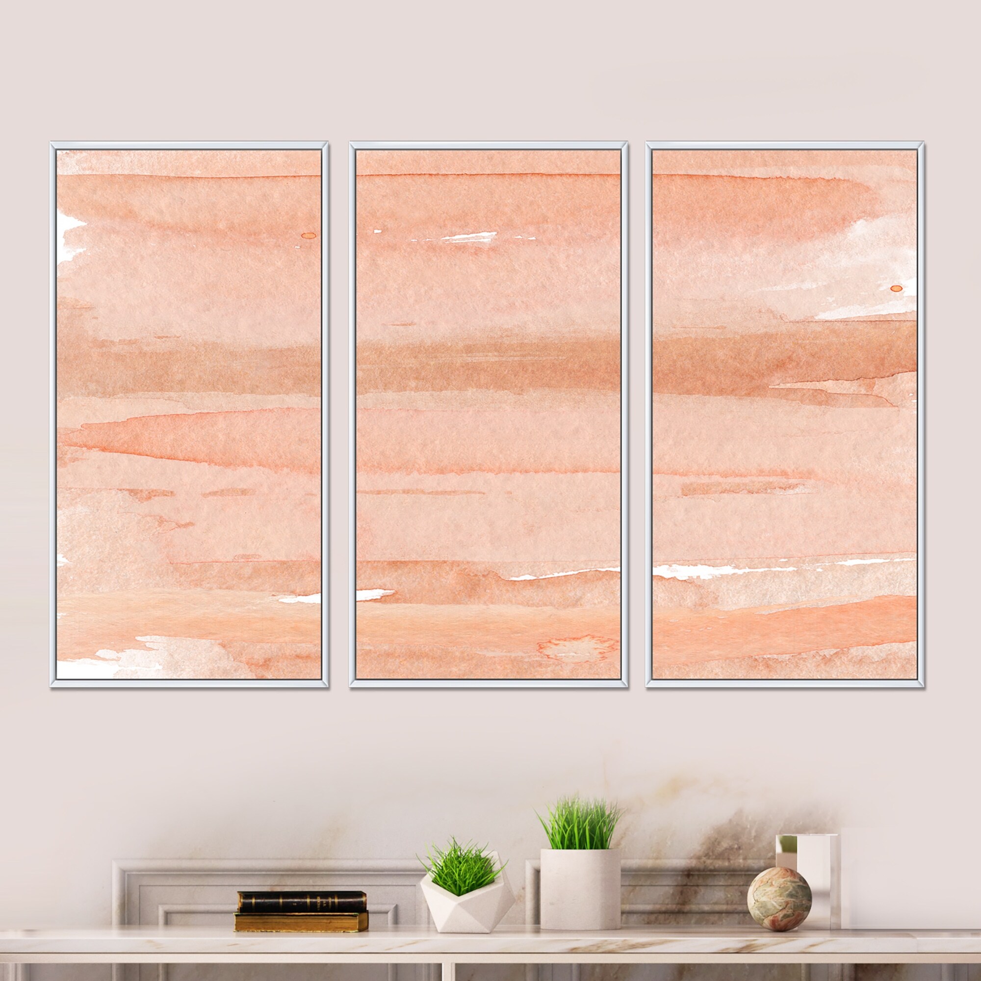 Designart "Pink And Orange Abstract Impression" Modern Framed Canvas Wall Art Set of 3 - 4 Colors of Frames