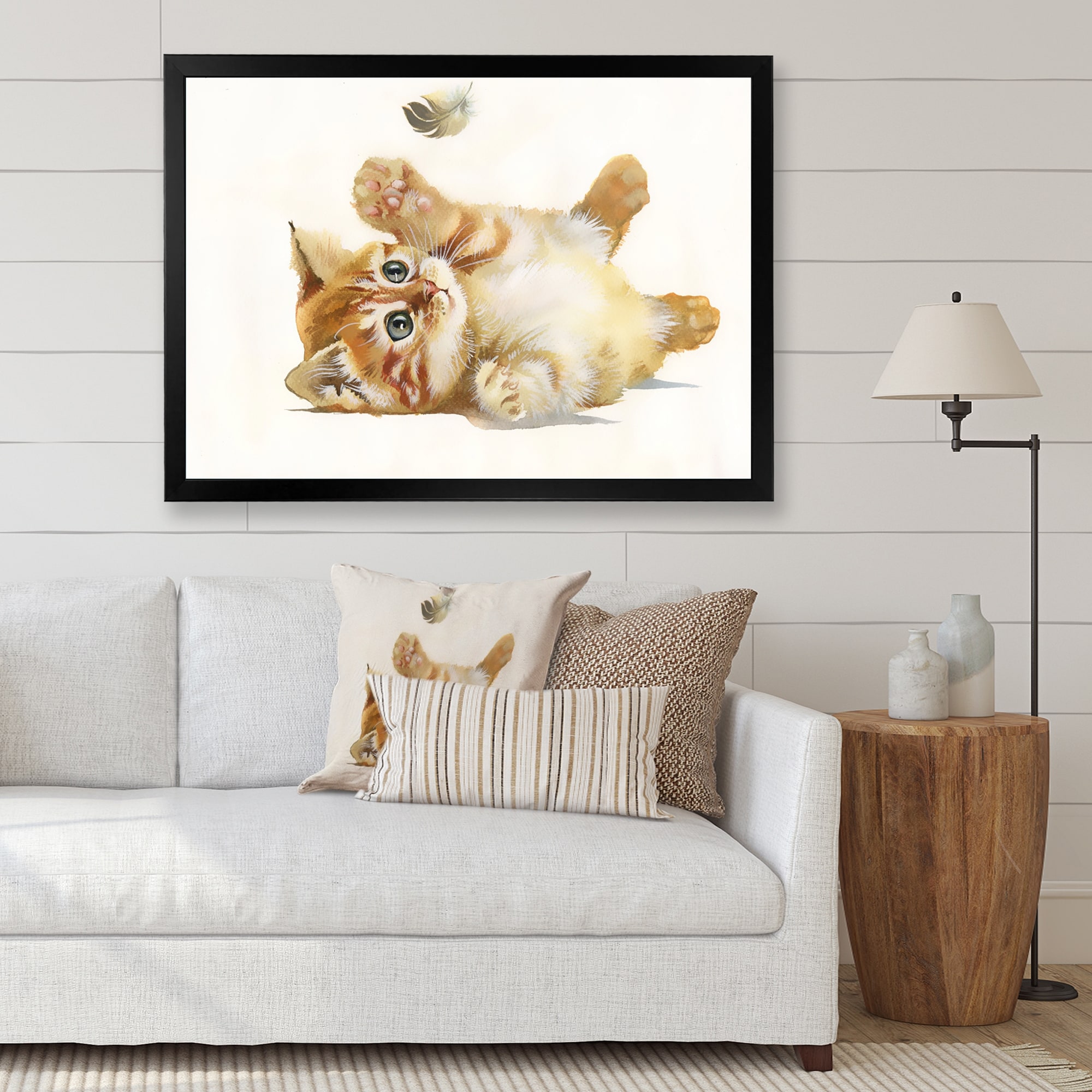 Designart "Little Orange Kitten With Feather" Traditional Framed Art Print