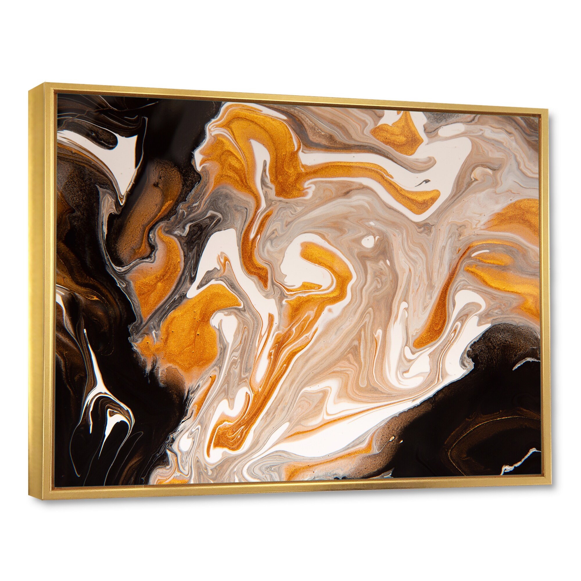 Designart "Liquid Art Ripples in Gold & Orange" Abstract Framed Art Print