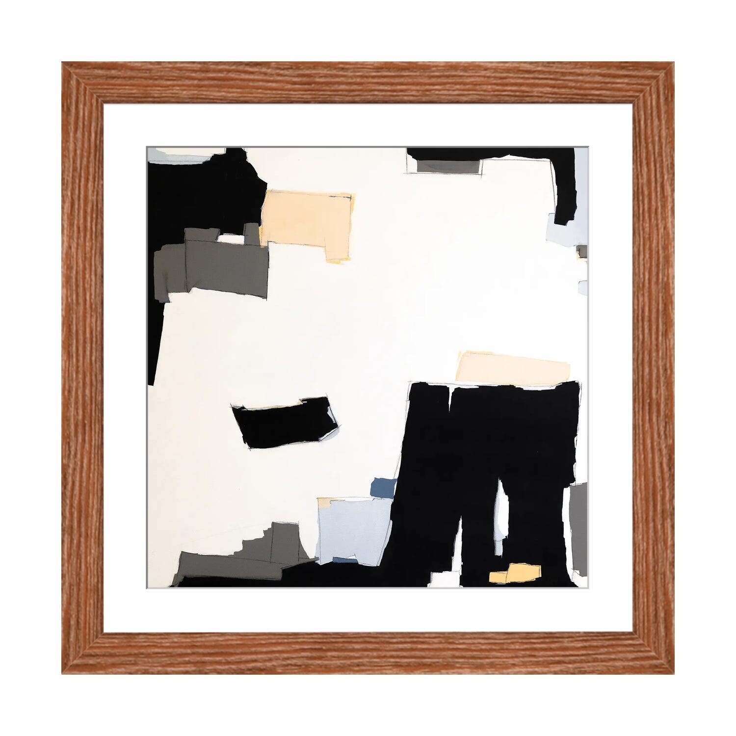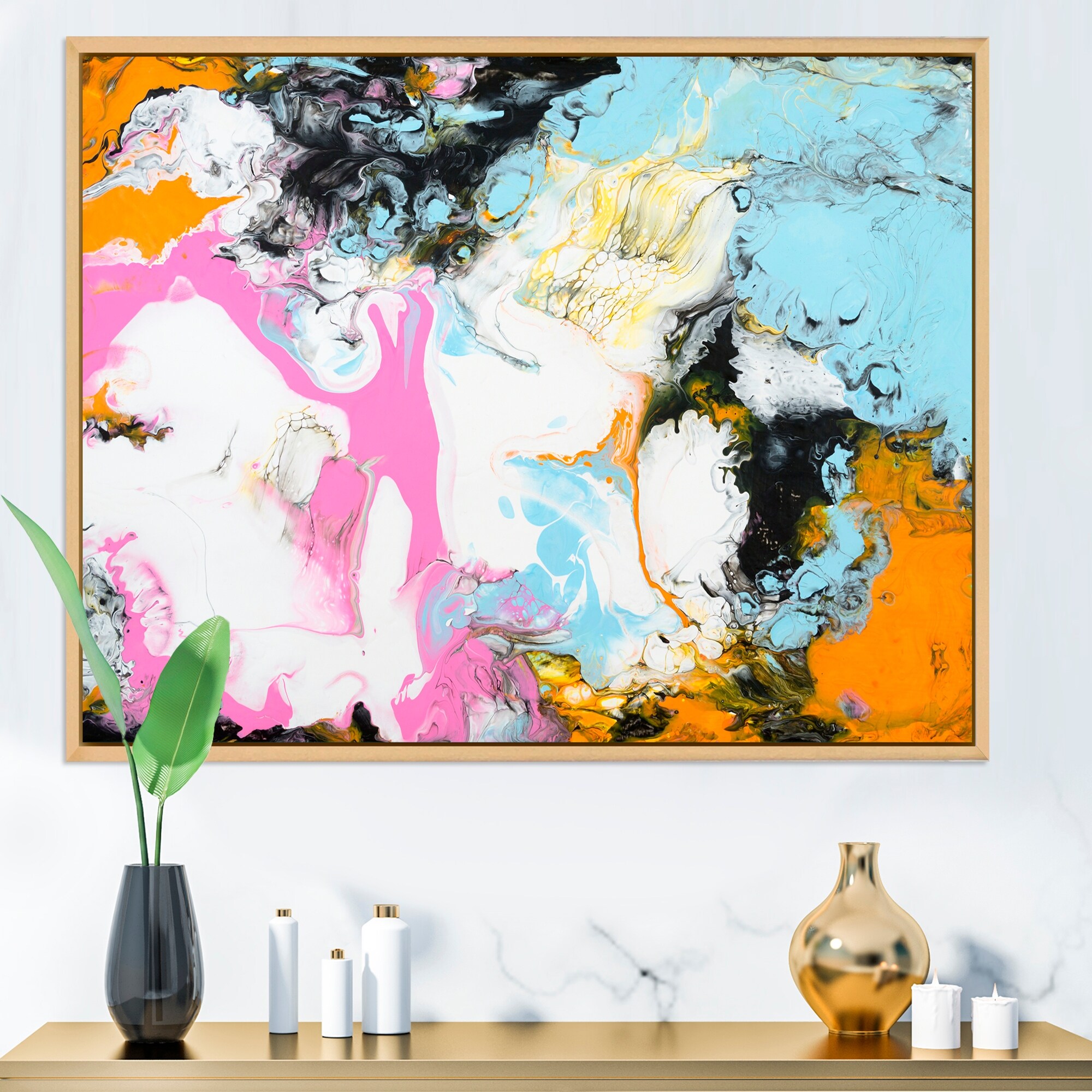 Designart "Pink, Orange, White and Light Blue Abstract" Modern Framed Canvas Wall Art Print