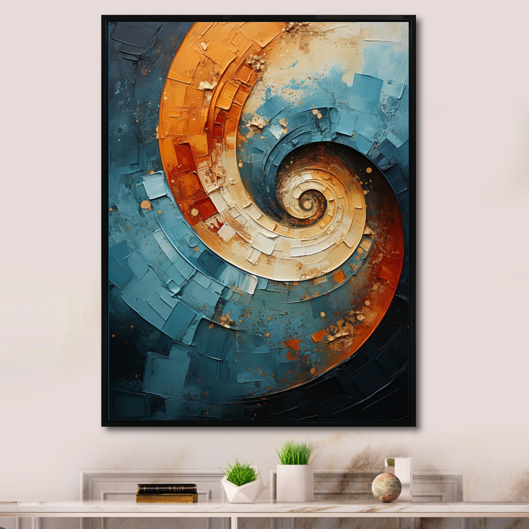 Designart "Orange Teal Abstract Spirals I" Abstract Spirals Framed Canvas Prints