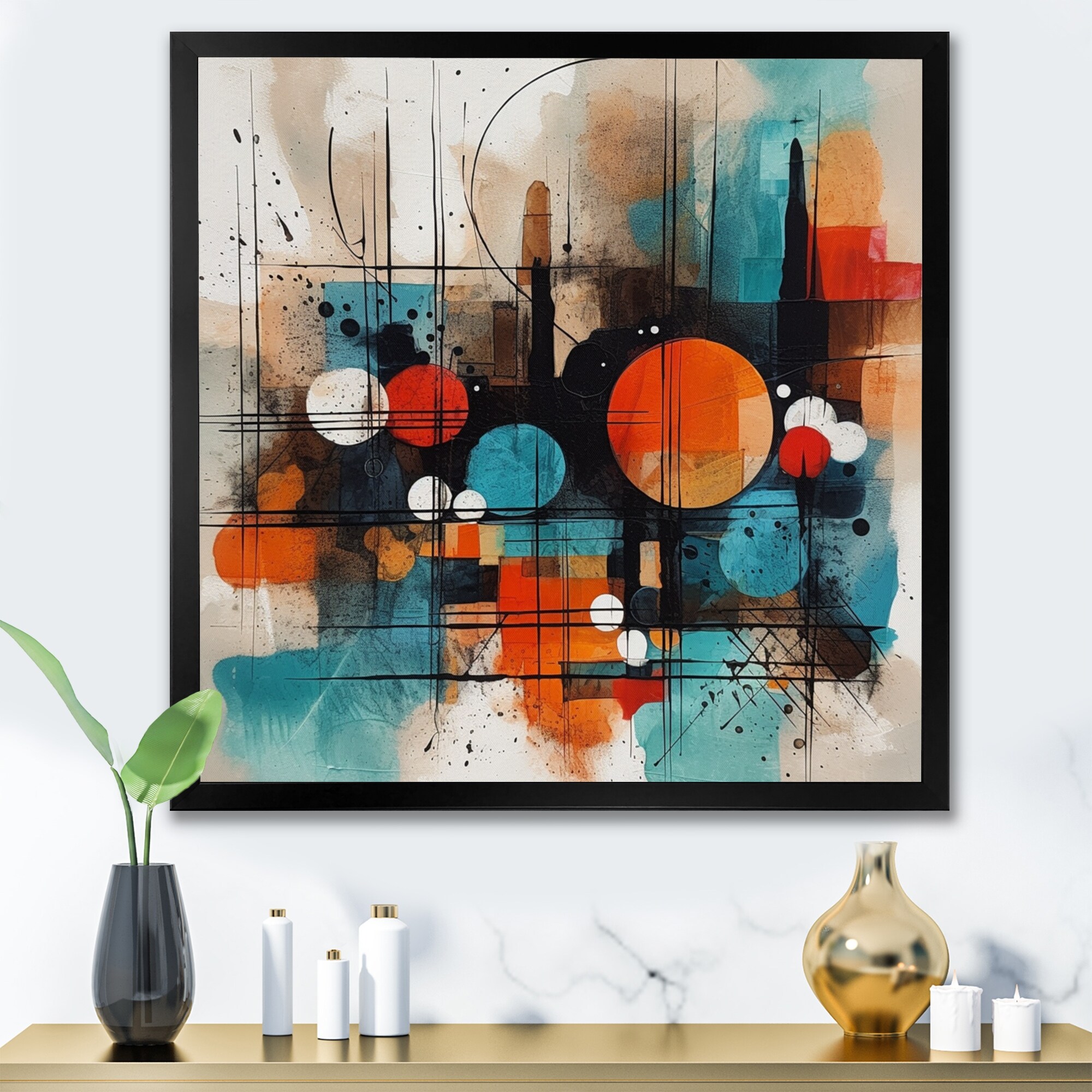 Designart "Orange Abstracted Geometric Explorations Iii" Modern Geometric Framed Wall Art for Living Room