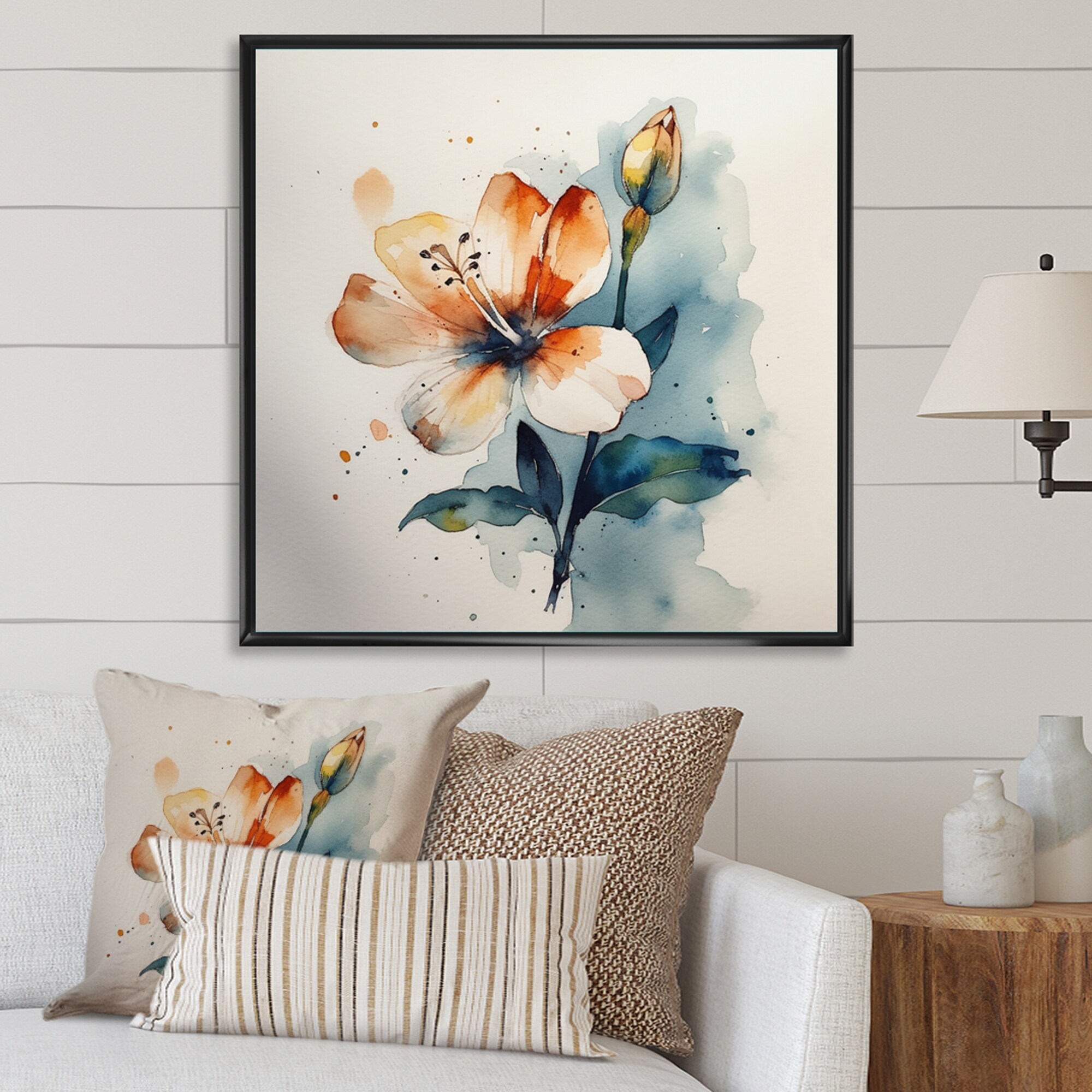 Designart "Coral Orange Wildflower By the River I" Wildflowers Framed Canvas Wall Art