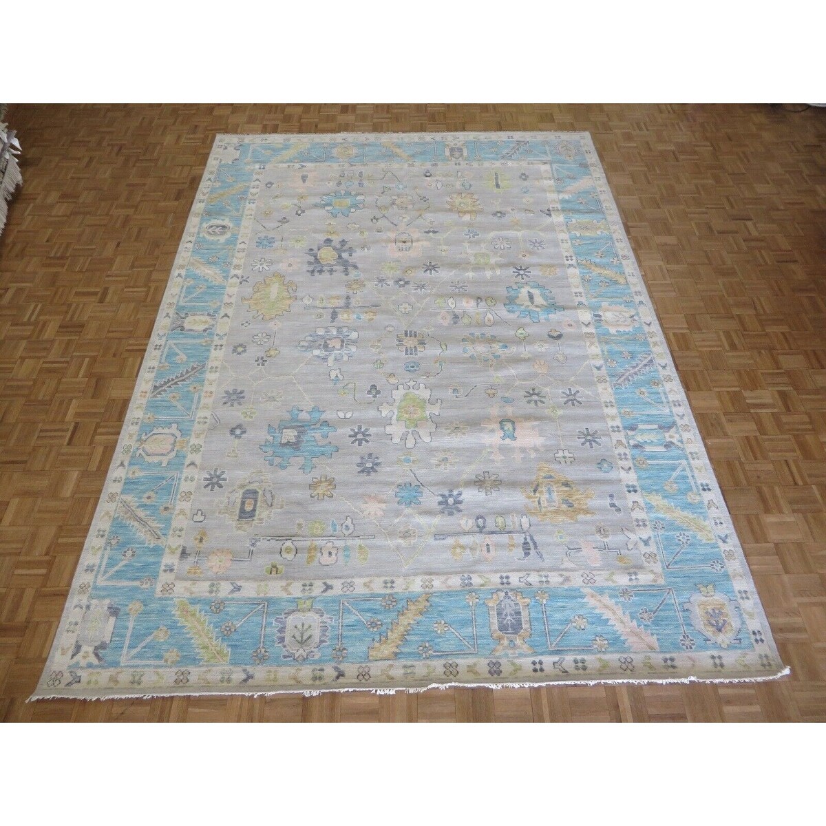 Hand Knotted Gray Oushak with Wool Oriental Rug (9'6" x 12'7") - 9'6" x 12'7"