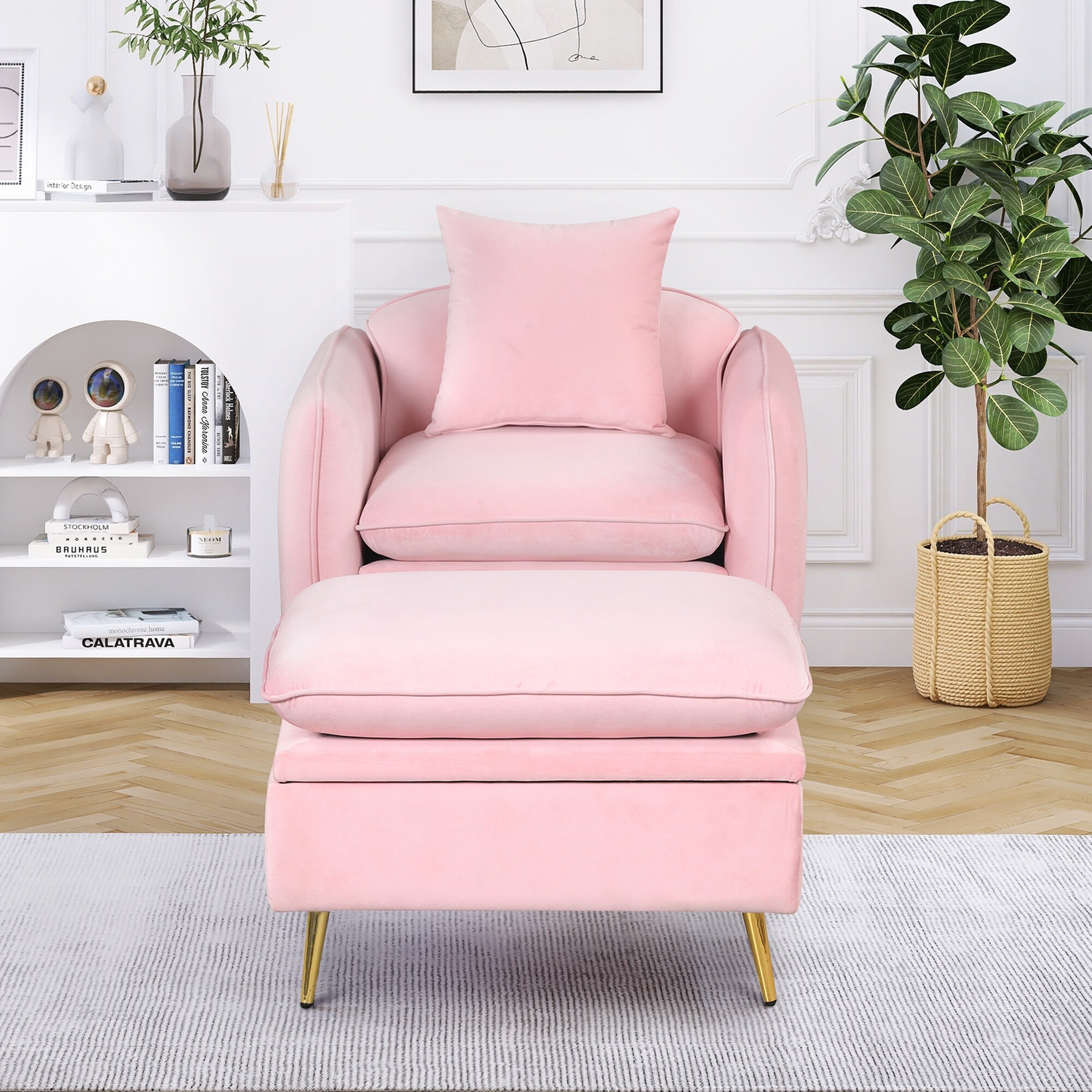 Accent Chair with Storage Ottoman Chair