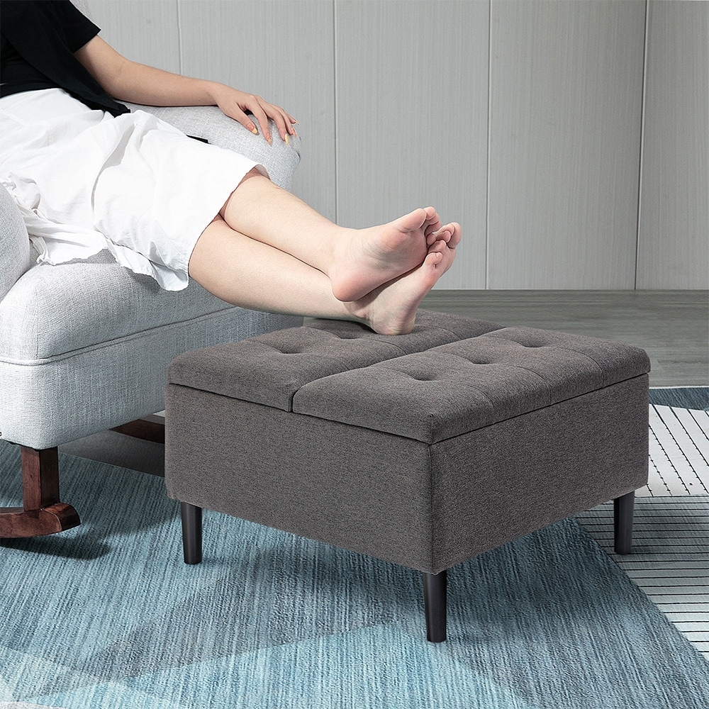 30" Storage Ottoman Tufted Upholstered Square Coffee Table Grey