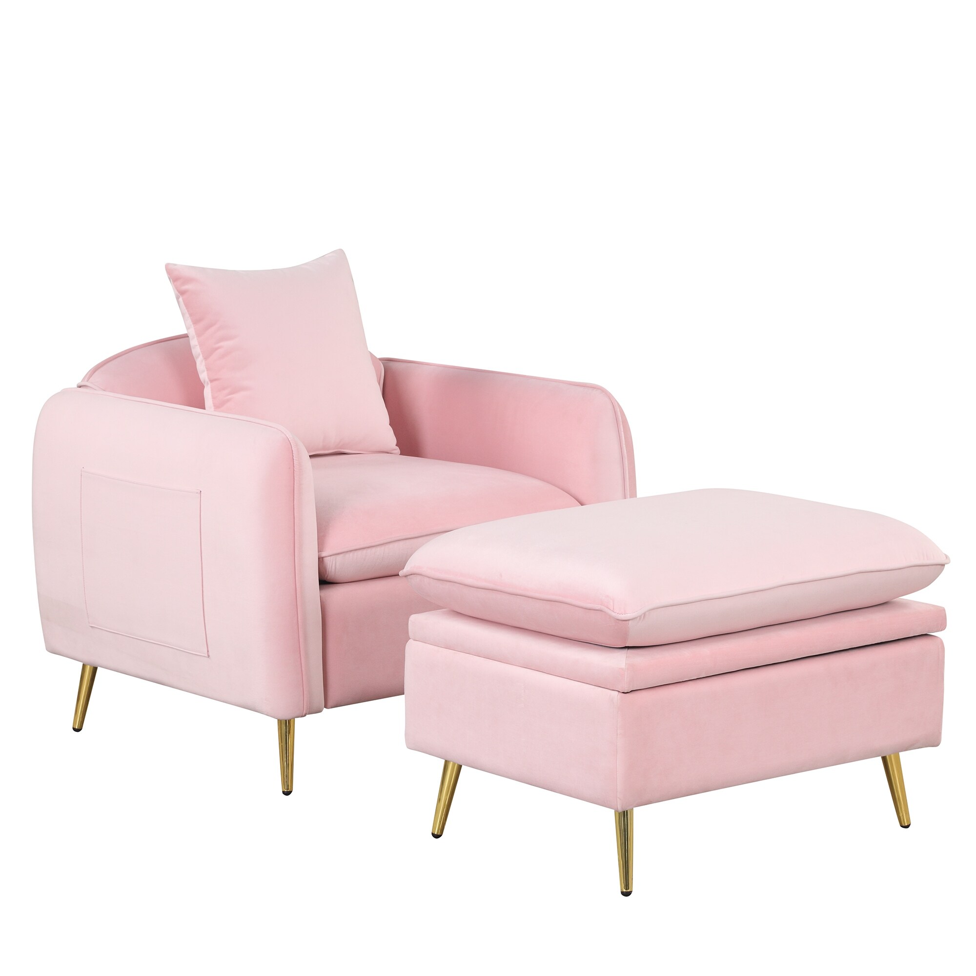 35.2" Velvet Single Sofa with Storage Ottoman, Pillows and Side Pocket