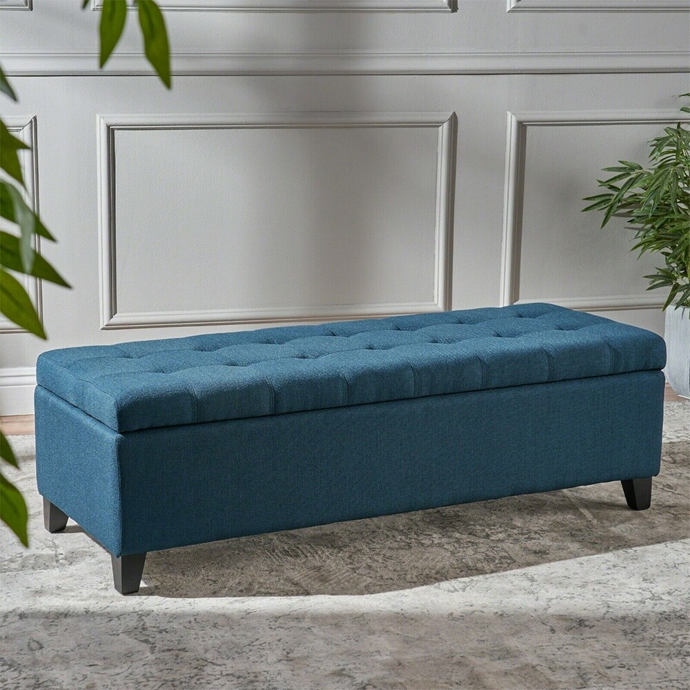 Fabric Tufted Storage Ottoman Dark Blue