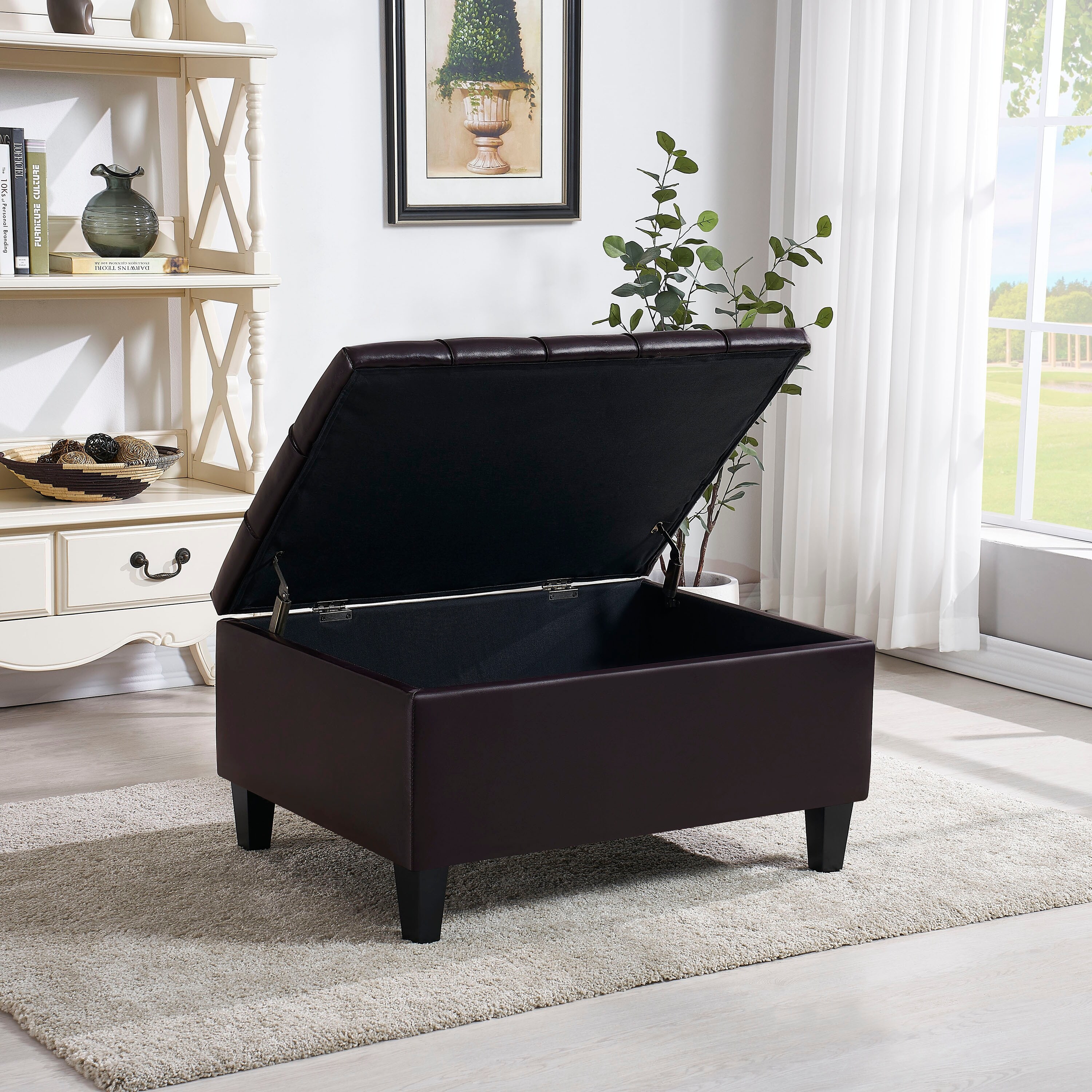 Montrose Faux Dark Brown Leather Storage Ottoman by iNSPIRE Q Classic