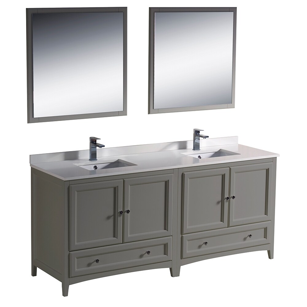 Fresca Oxford 72" Gray Traditional Double Sink Bathroom Vanity