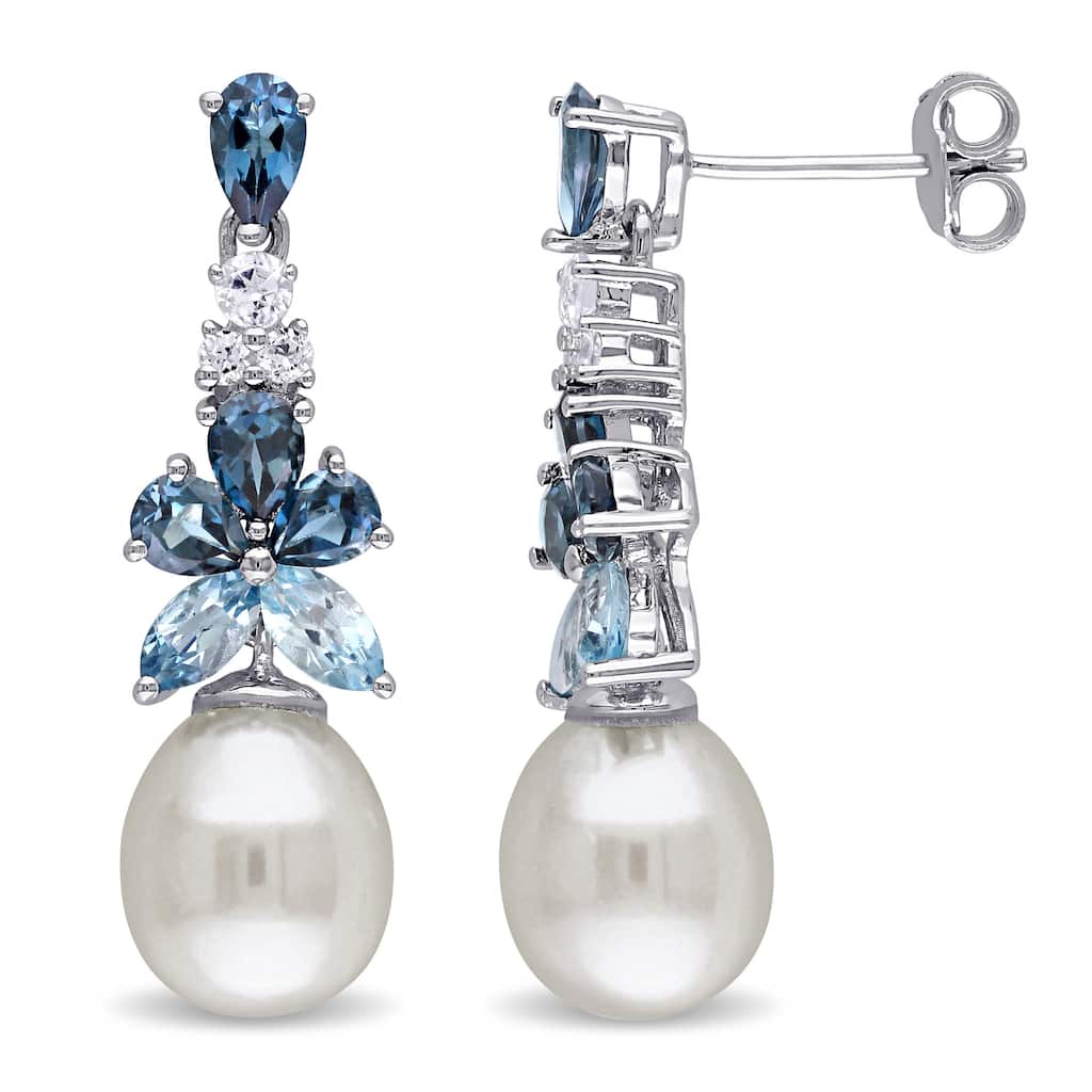 Miadora Sterling Silver Freshwater Pearl Multi-gemstone Earrings