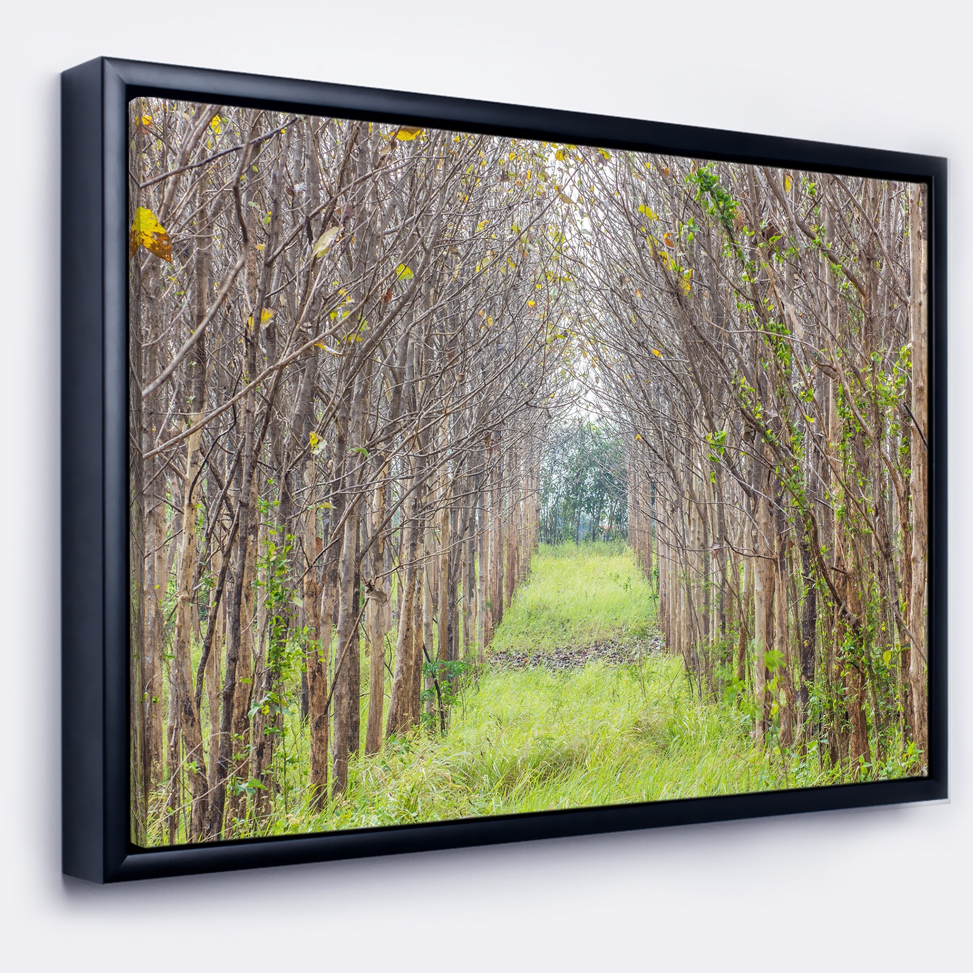 Designart "Pathway Through Fall Green Trees" Landscape Photography Framed Canvas Print