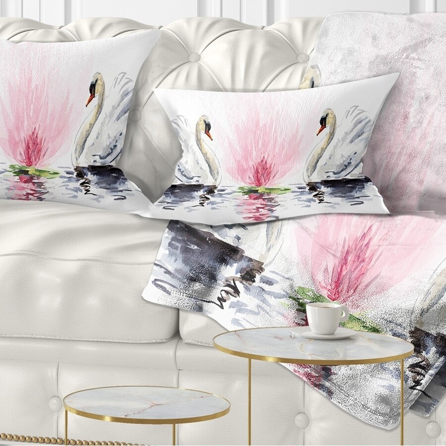 Designart 'Floating Swans on White Background' Animal Throw Pillow