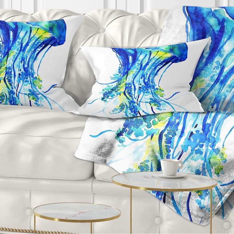Designart 'Blue Jellyfish in Ocean' Animal Throw Pillow