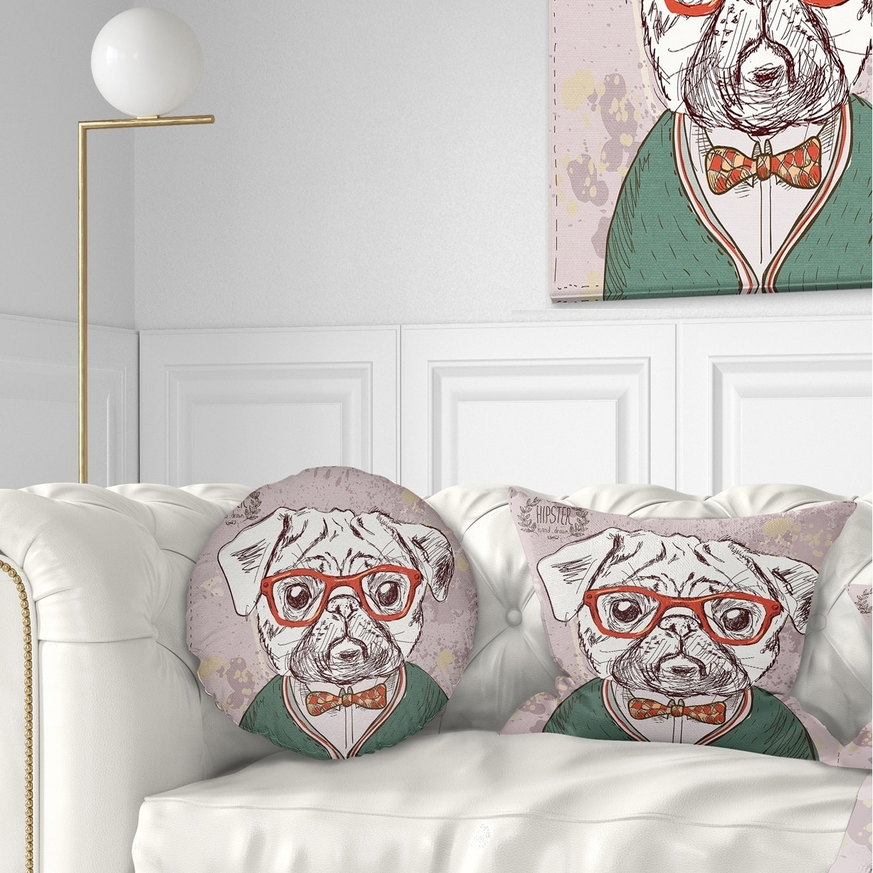Designart 'Hipster Pug Dog in Vintage Style' Animal Throw Pillow