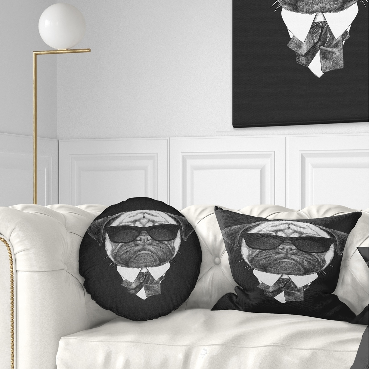 Designart 'Pug Dog Portrait in Suit' Animal Throw Pillow