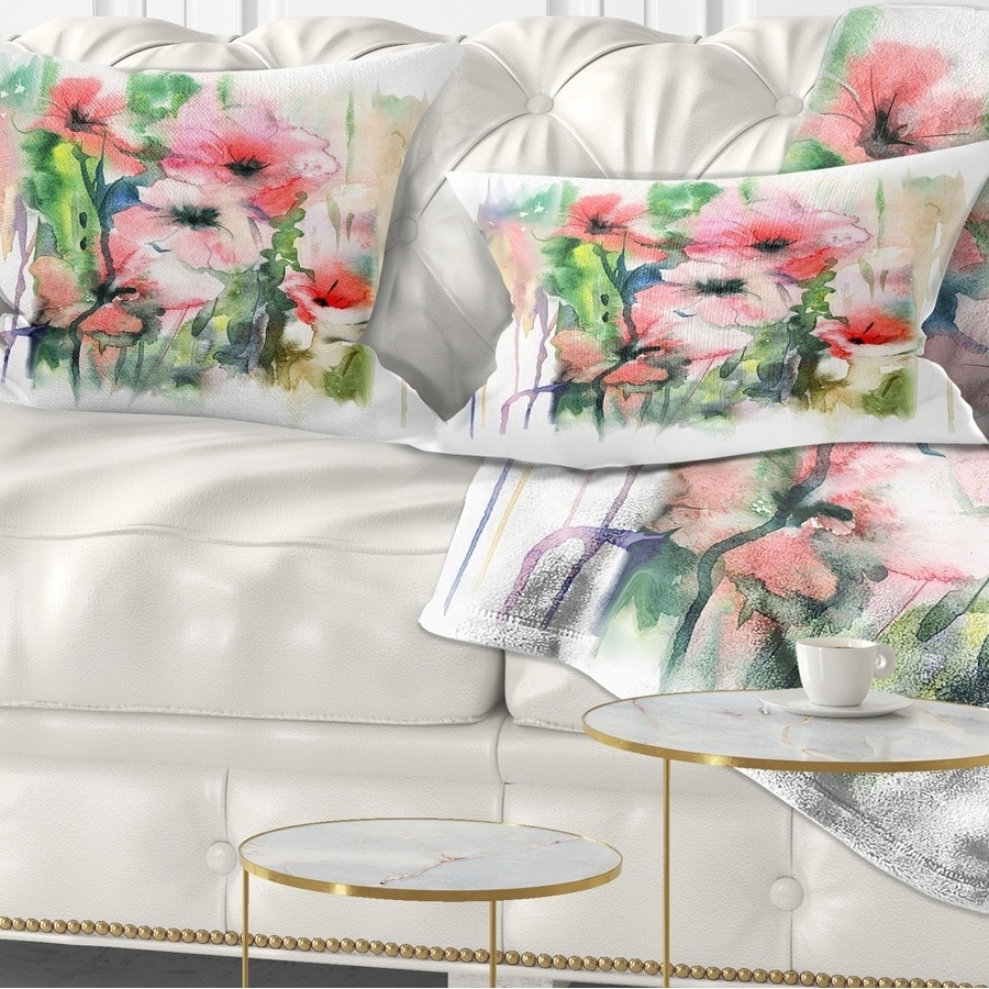 Designart 'Pink Floral Watercolor Illustration' Animal Throw Pillow
