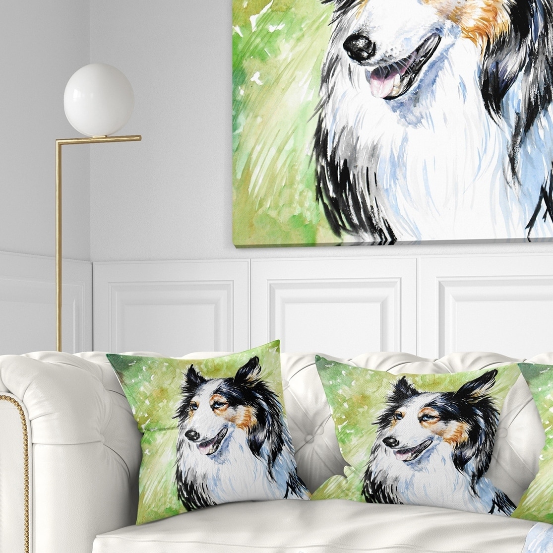 Designart 'Black Collie Dog Watercolor' Animal Throw Pillow