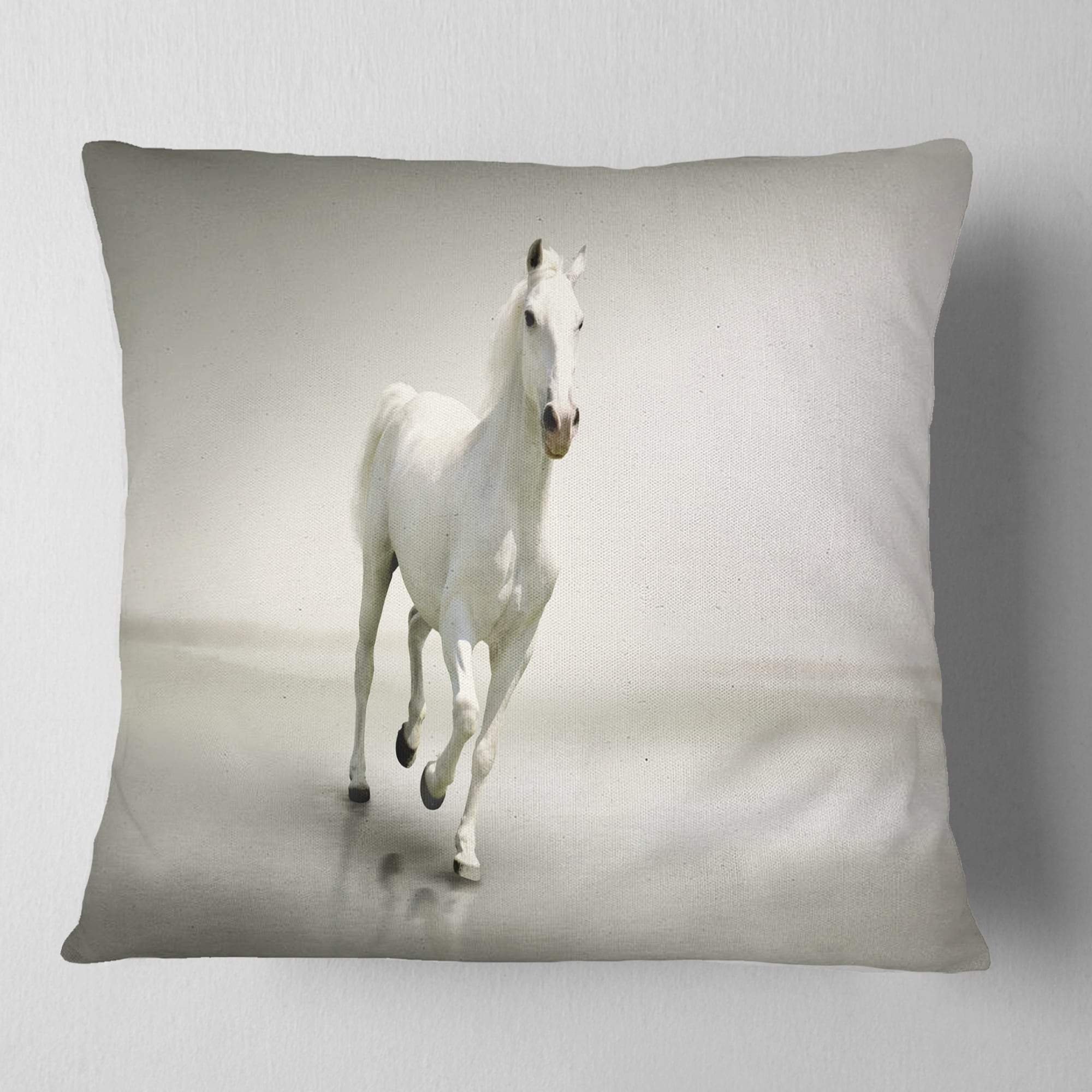 Designart 'Beautiful White Horse Running' Animal Throw Pillow