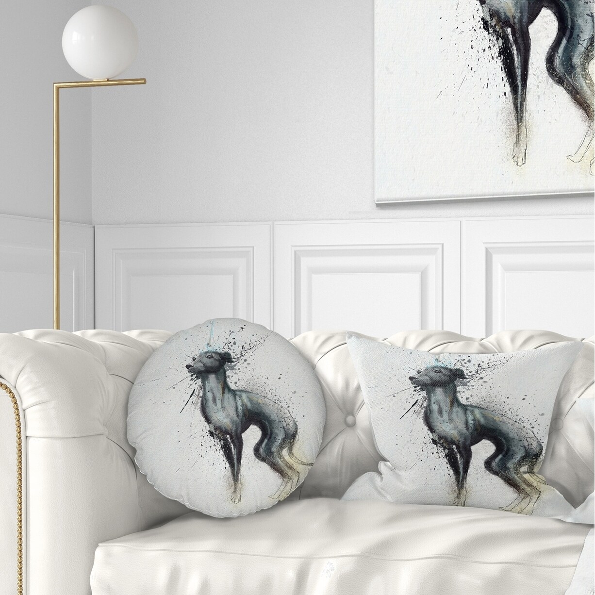 Designart 'Black Dog Watercolor with Splashes' Animal Throw Pillow